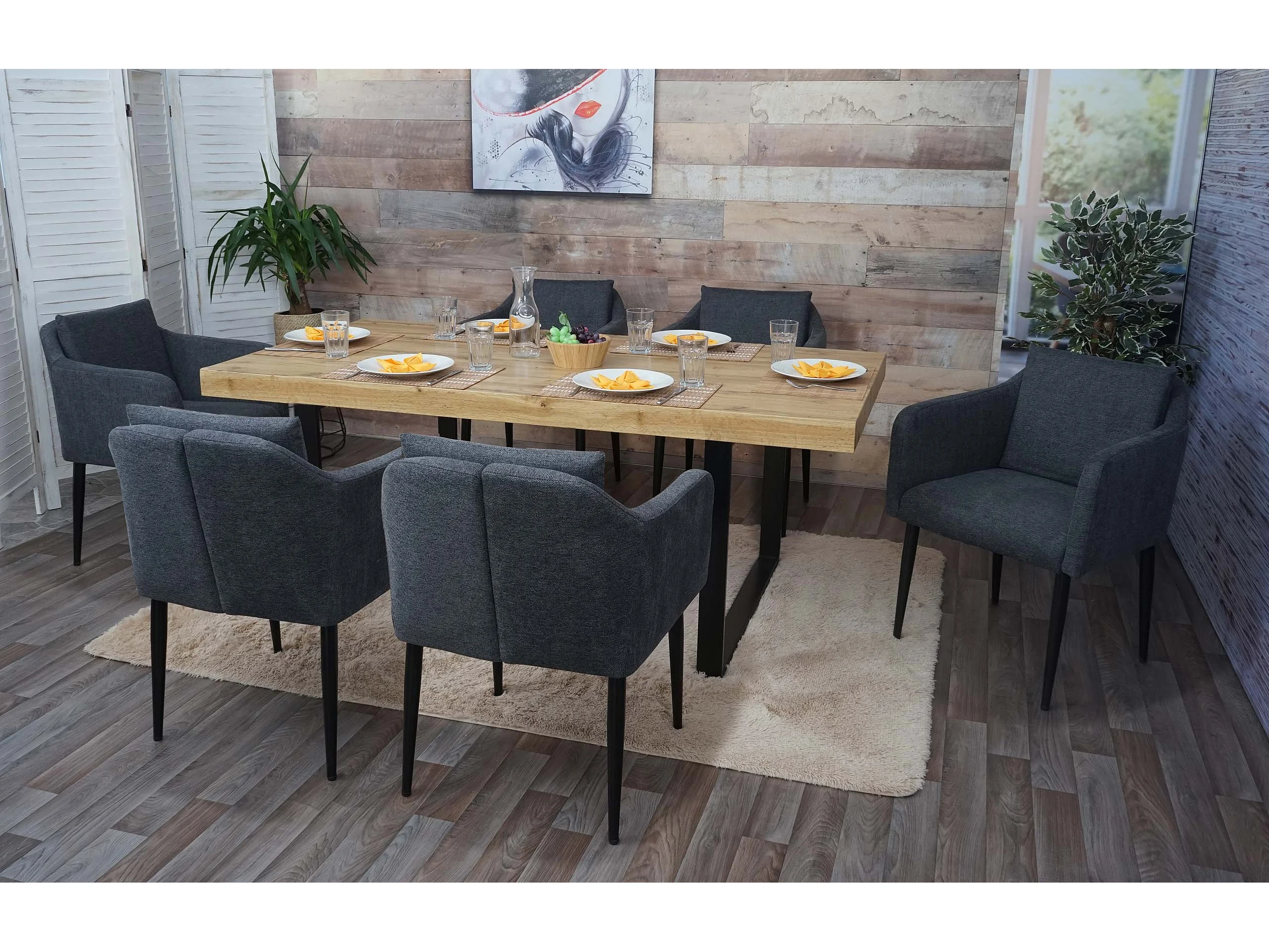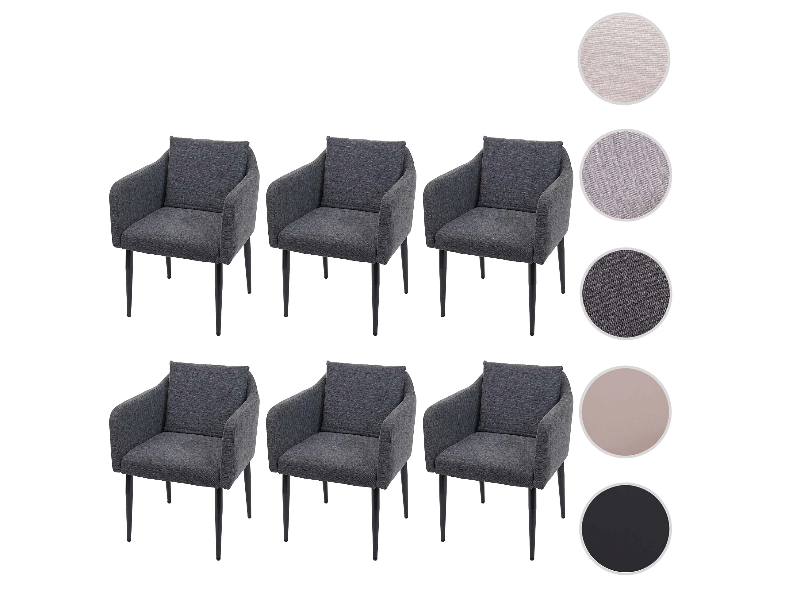 Set 6x poltrone sedie pranzo soggiorno Lounge MCW-H93 ~ tessuto grigio scuro