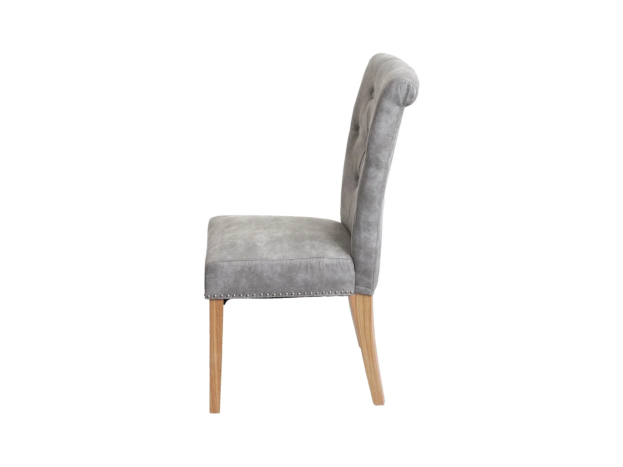 Set 6x sedie vintage retrò inglesi sala pranzo Chesterfield II tessuto grigio piedi chiari
