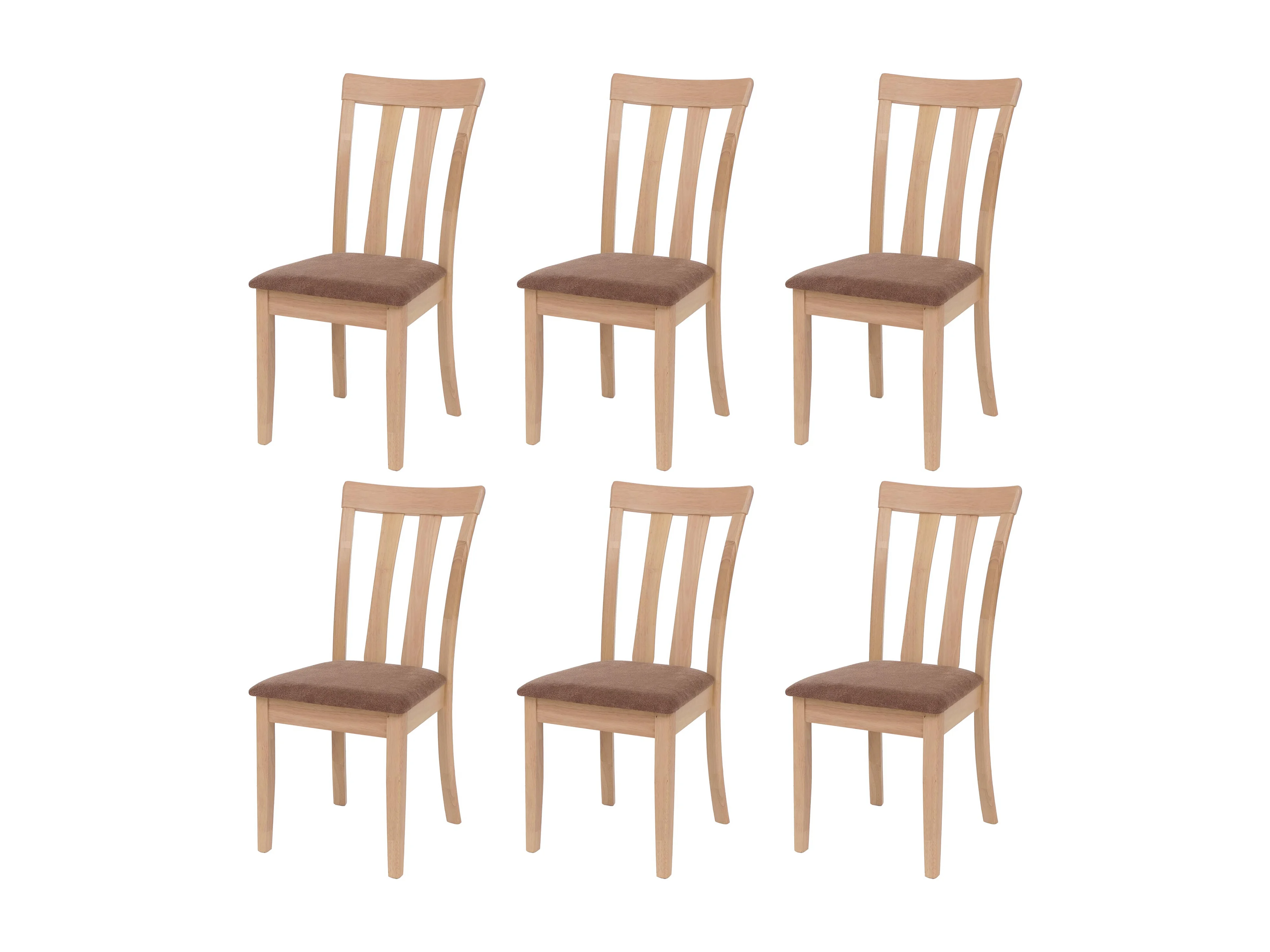 Set 6x sedie cucina sala soggiorno MCW-G46 legno massello ~ struttura naturale cuscino marrone