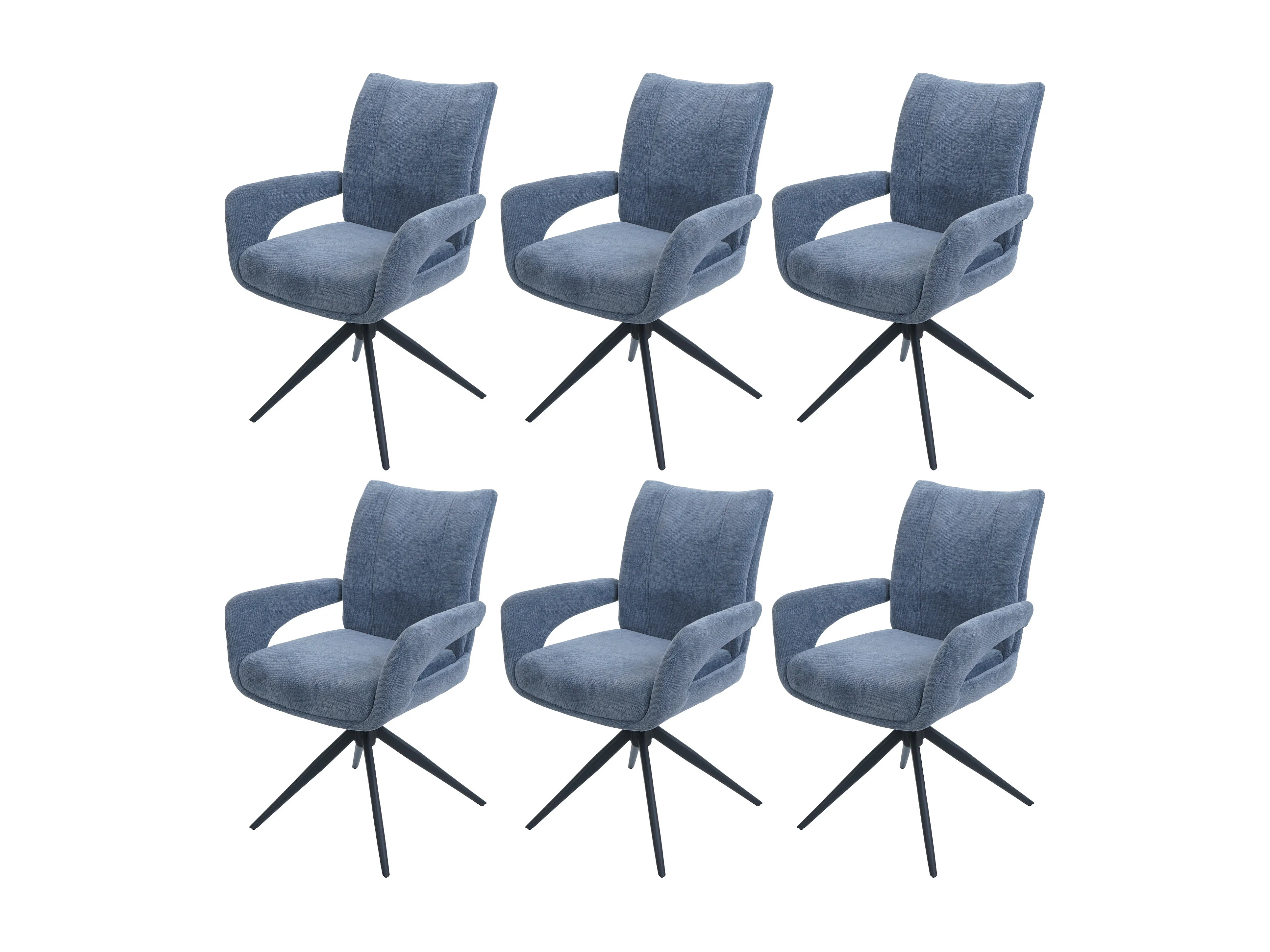 Set 6x sedie da pranzo MCW-O78, da cucina, seduta girevole posizionamento automatico tessuto ciniglia ~ grigio-blu