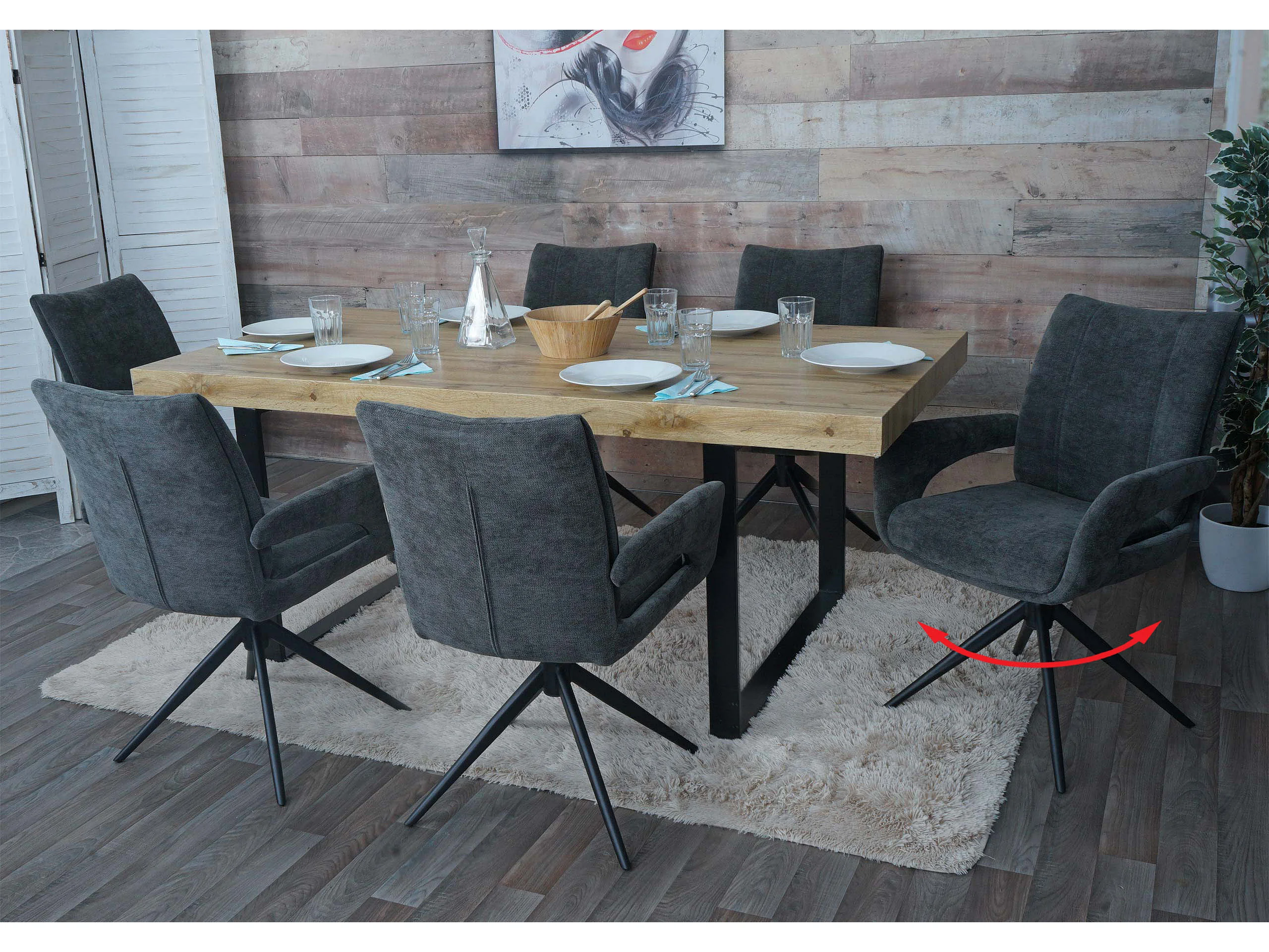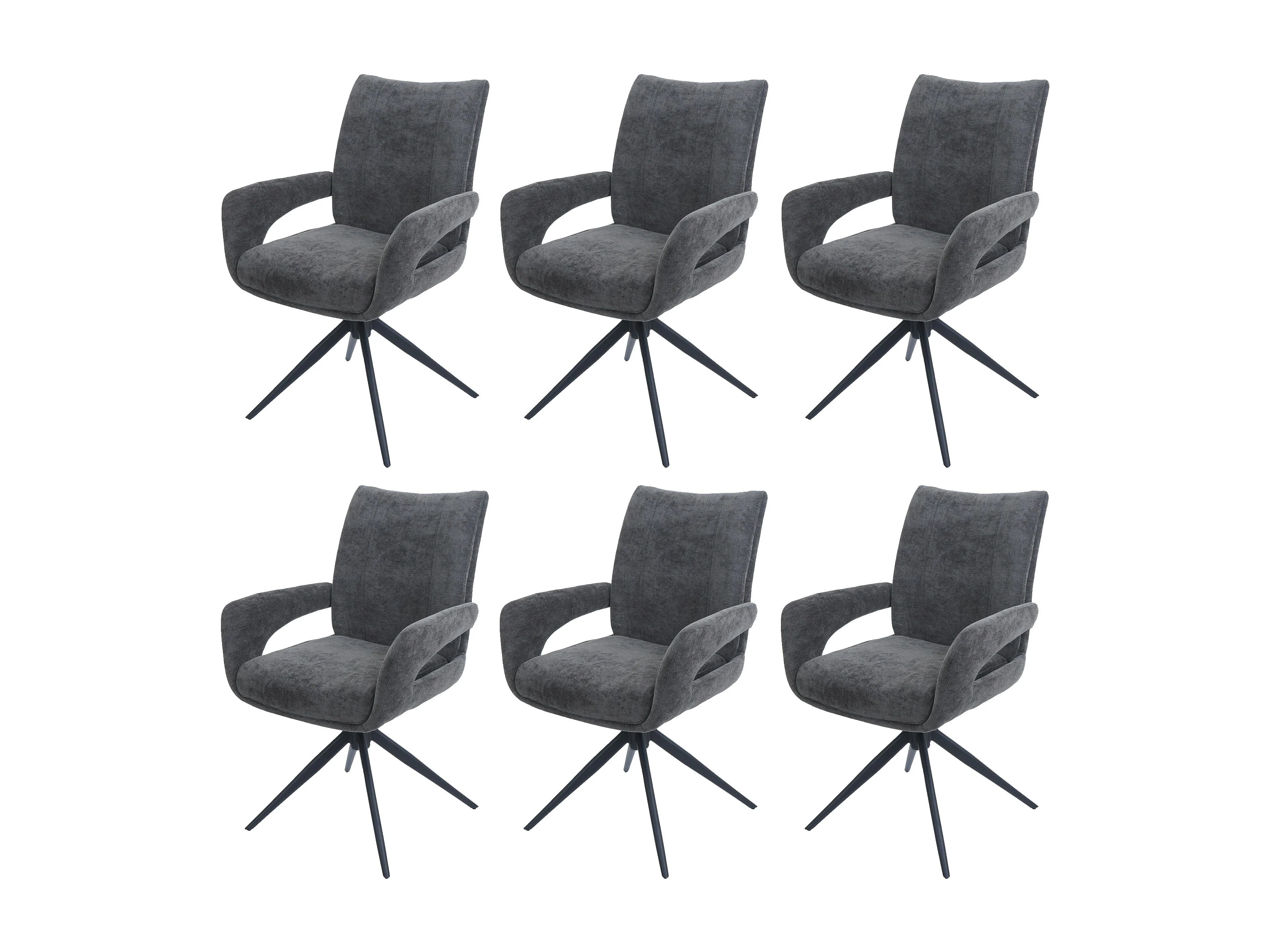 Set 6x sedie da pranzo MCW-O78, da cucina, seduta girevole posizionamento automatico tessuto ciniglia ~ grigio scuro
