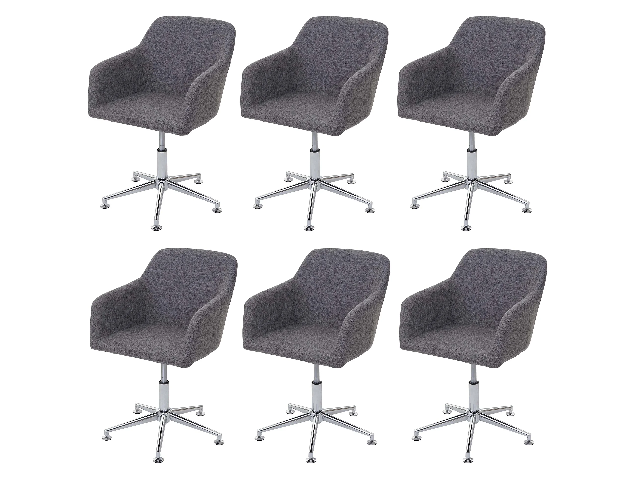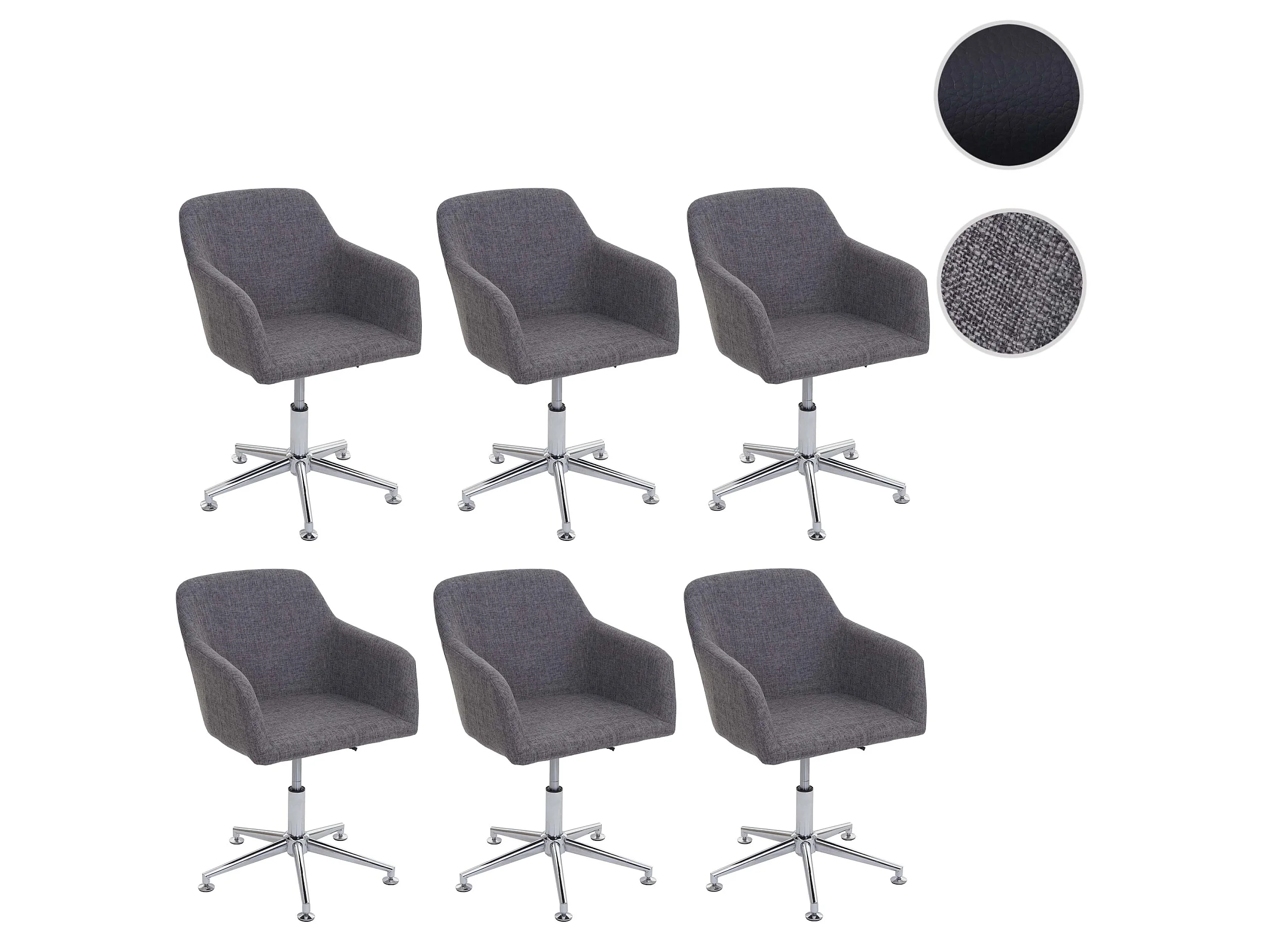 Set 6x sedie poltrone lounge elegante altezza regolabile girevole MCW-A74 tessuto grigio