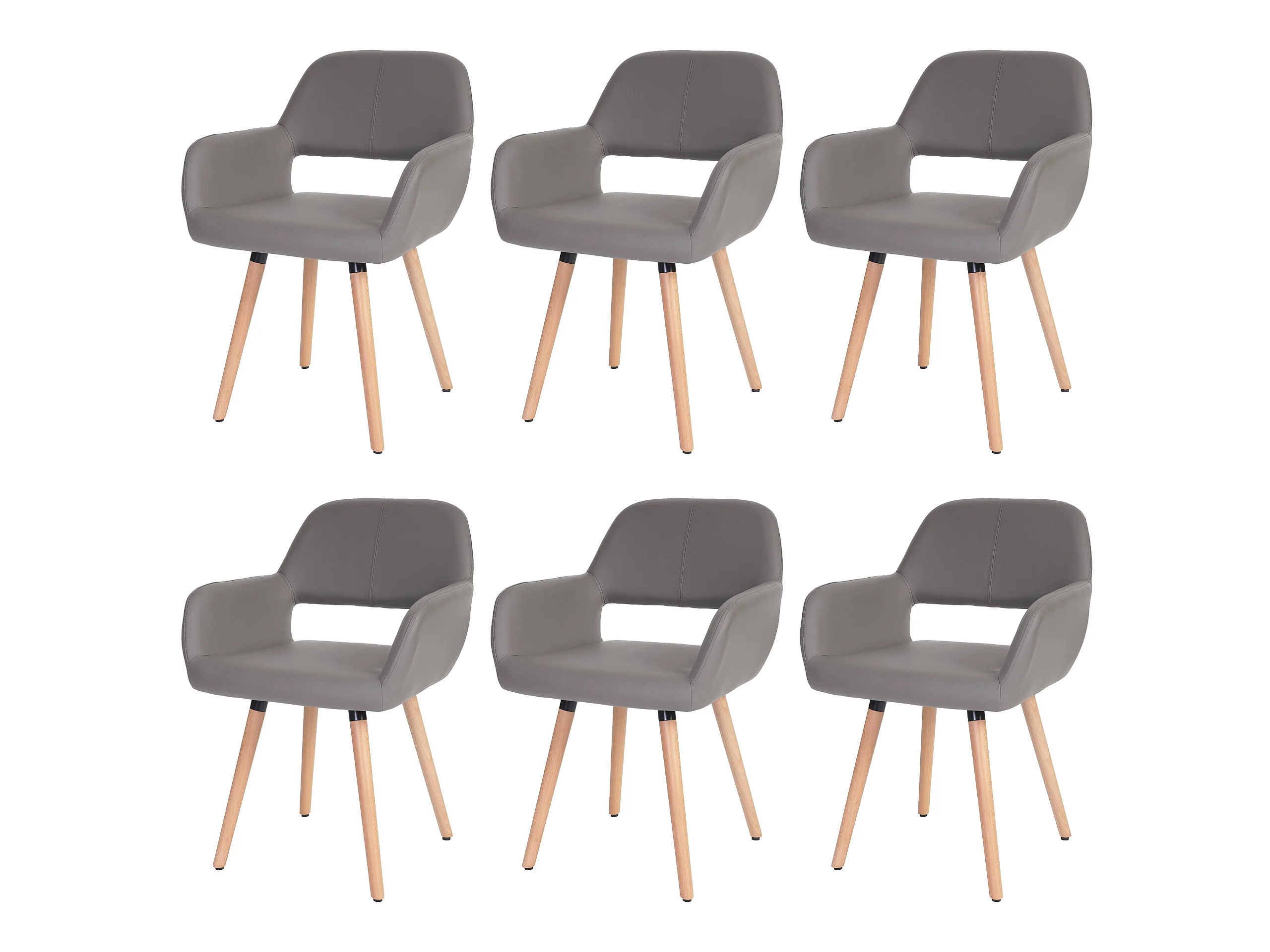 Set 6x sedie sala da pranzo soggiorno cucina MCW-A50 II design retro legno ecopelle grigio chiaro