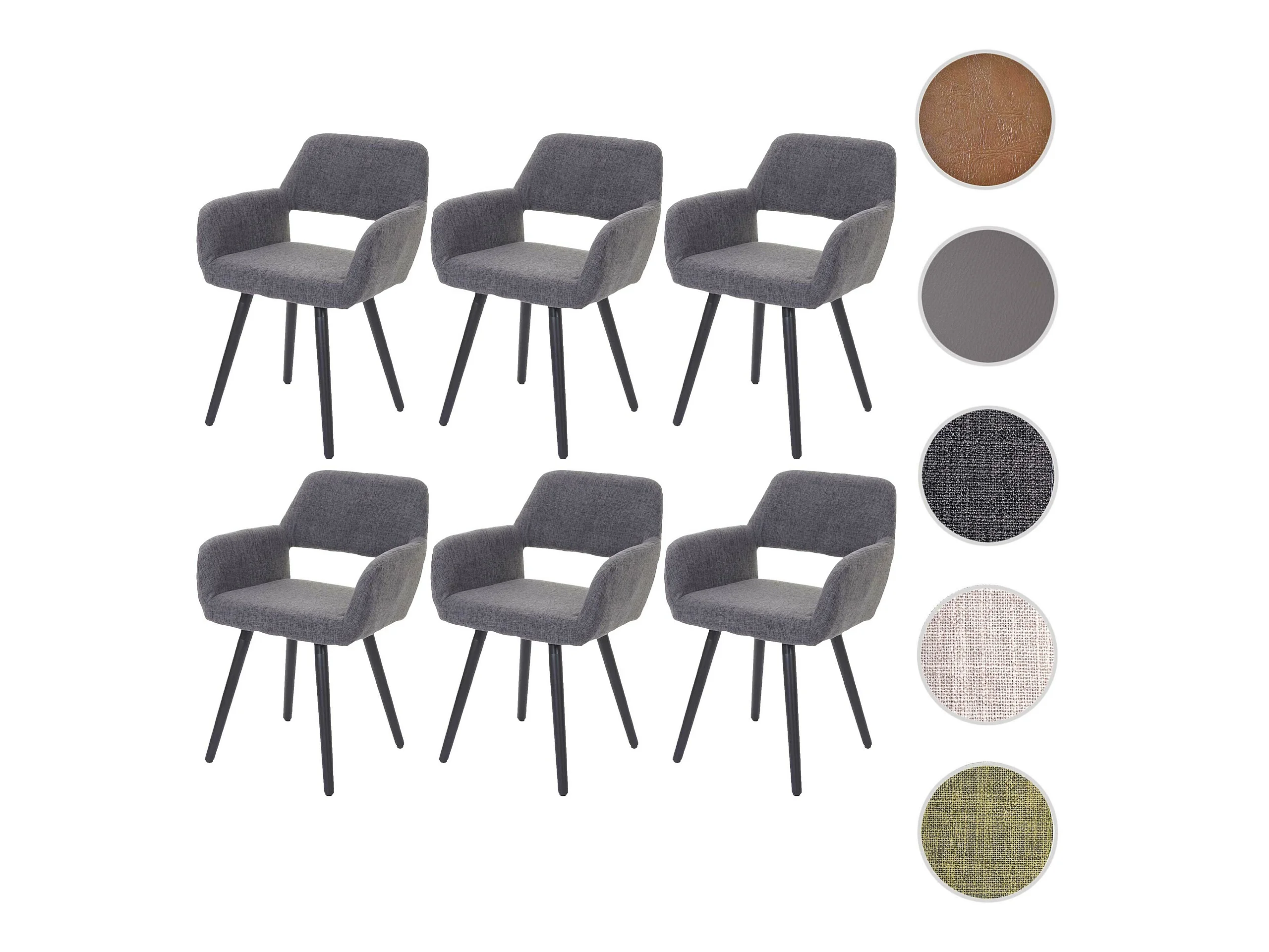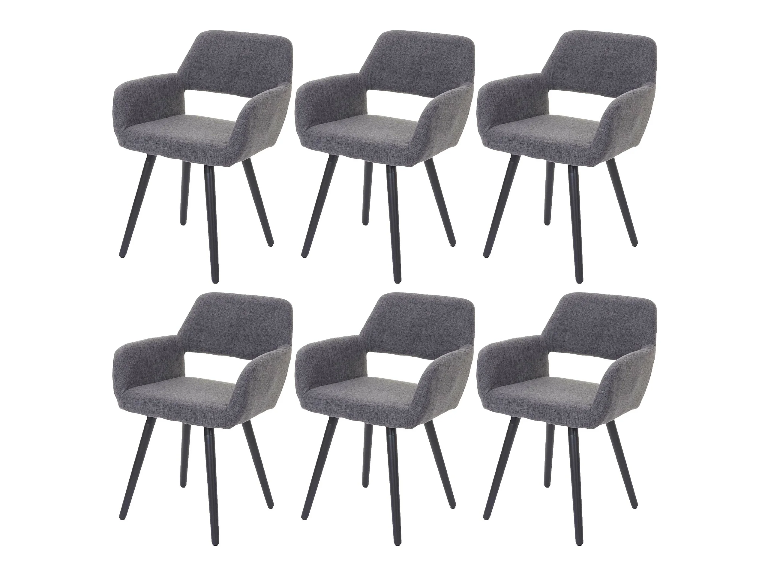 Set di 6 sedie da pranzo MCW-O28, poltroncina da cucina imbottita, stoffa/tessuto (340g/m²) metallo ~ grigio scuro