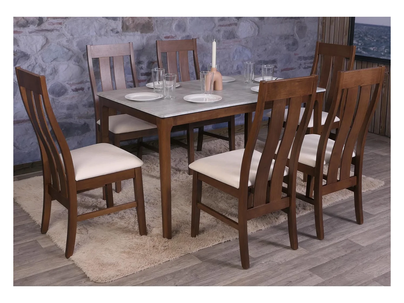 Set 6x sedie sala pranzo soggiorno MCW-M58 100x46x45cm 150kg tessuto legno scuro avorio