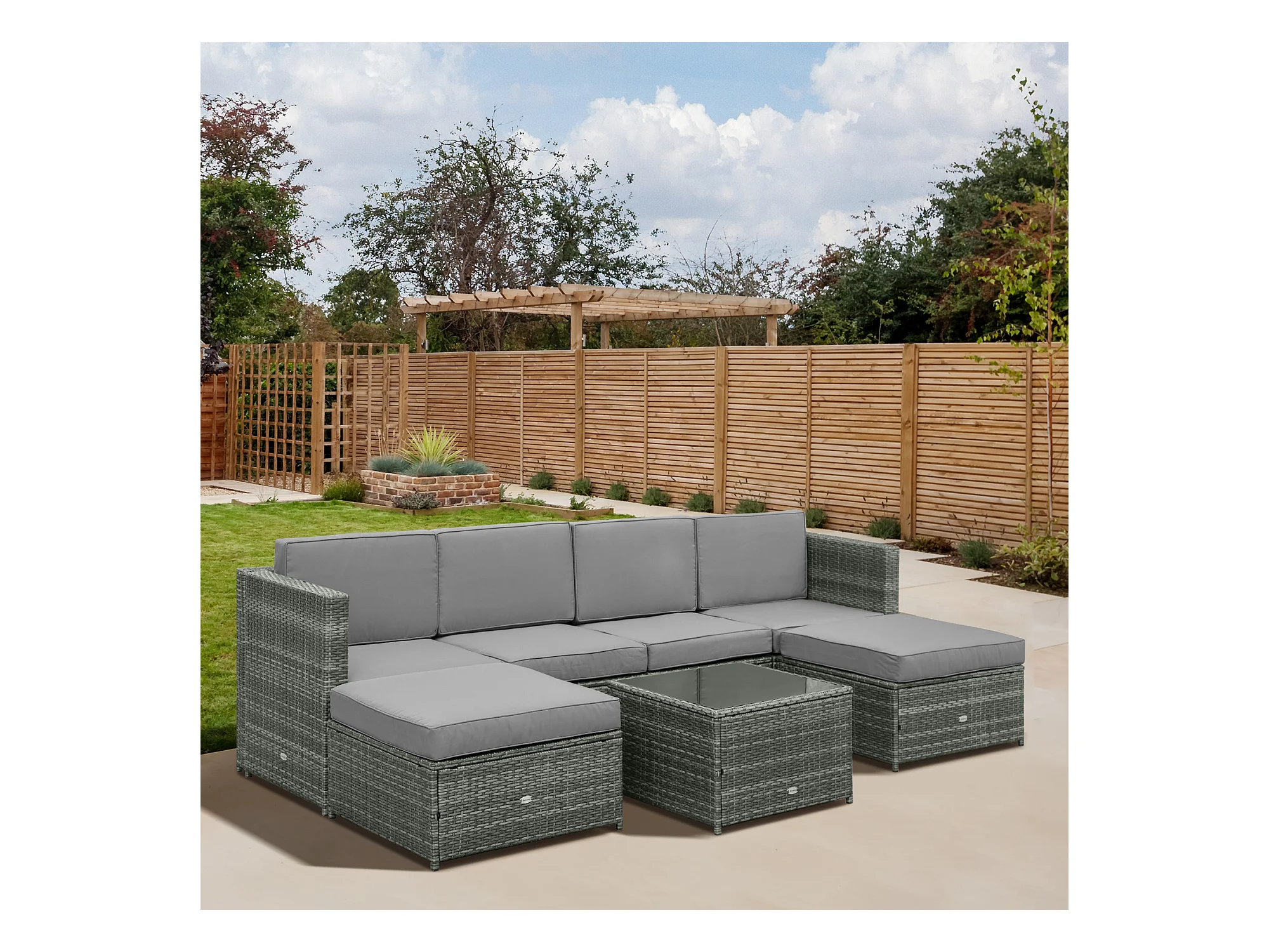 Divano Giardino Tavolo Cuscini Semicircolare Grigio Polyrattan