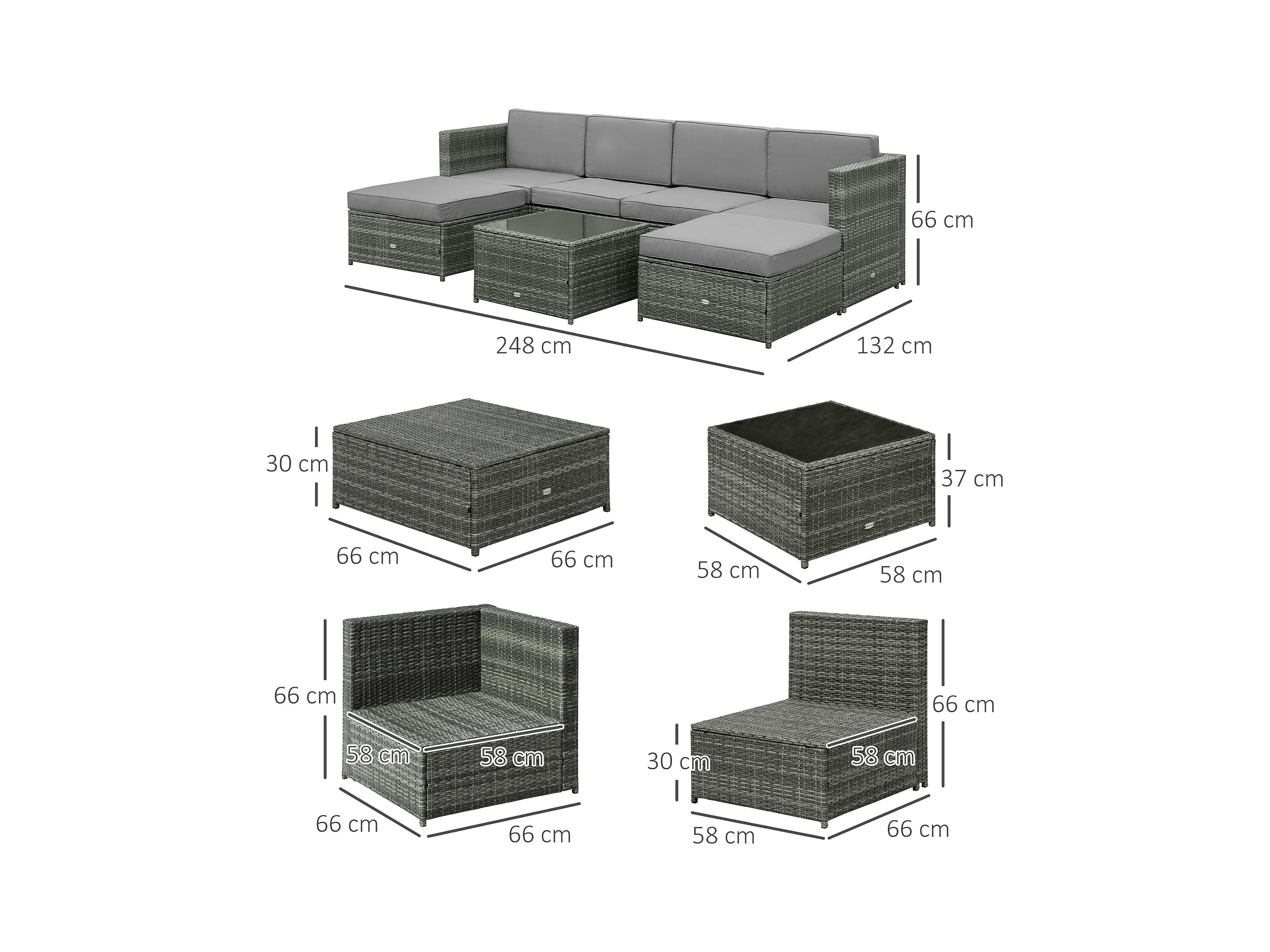 Set 7 pezzi salotto esterni con poltrona e tavolino grigio