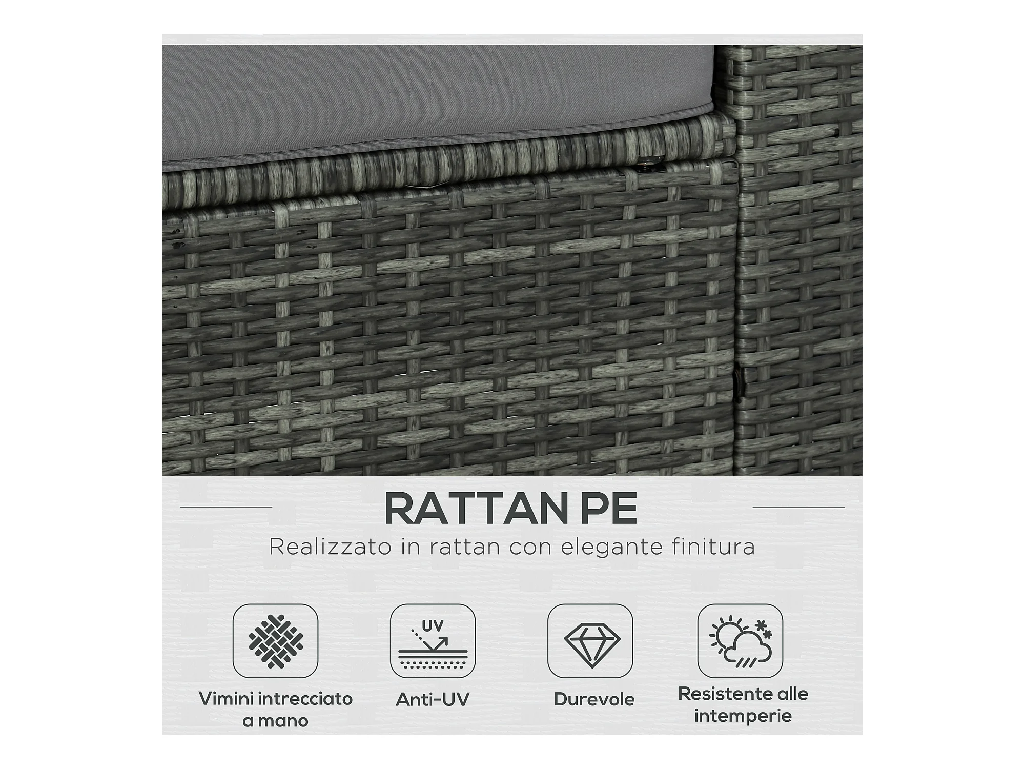 Set da giardino con divano chaise longue tavolino rattan pe