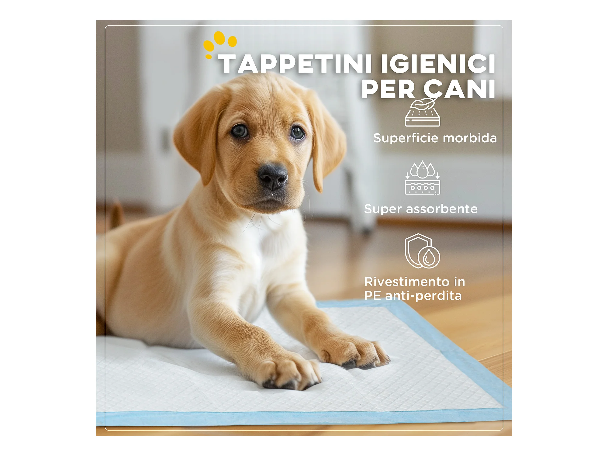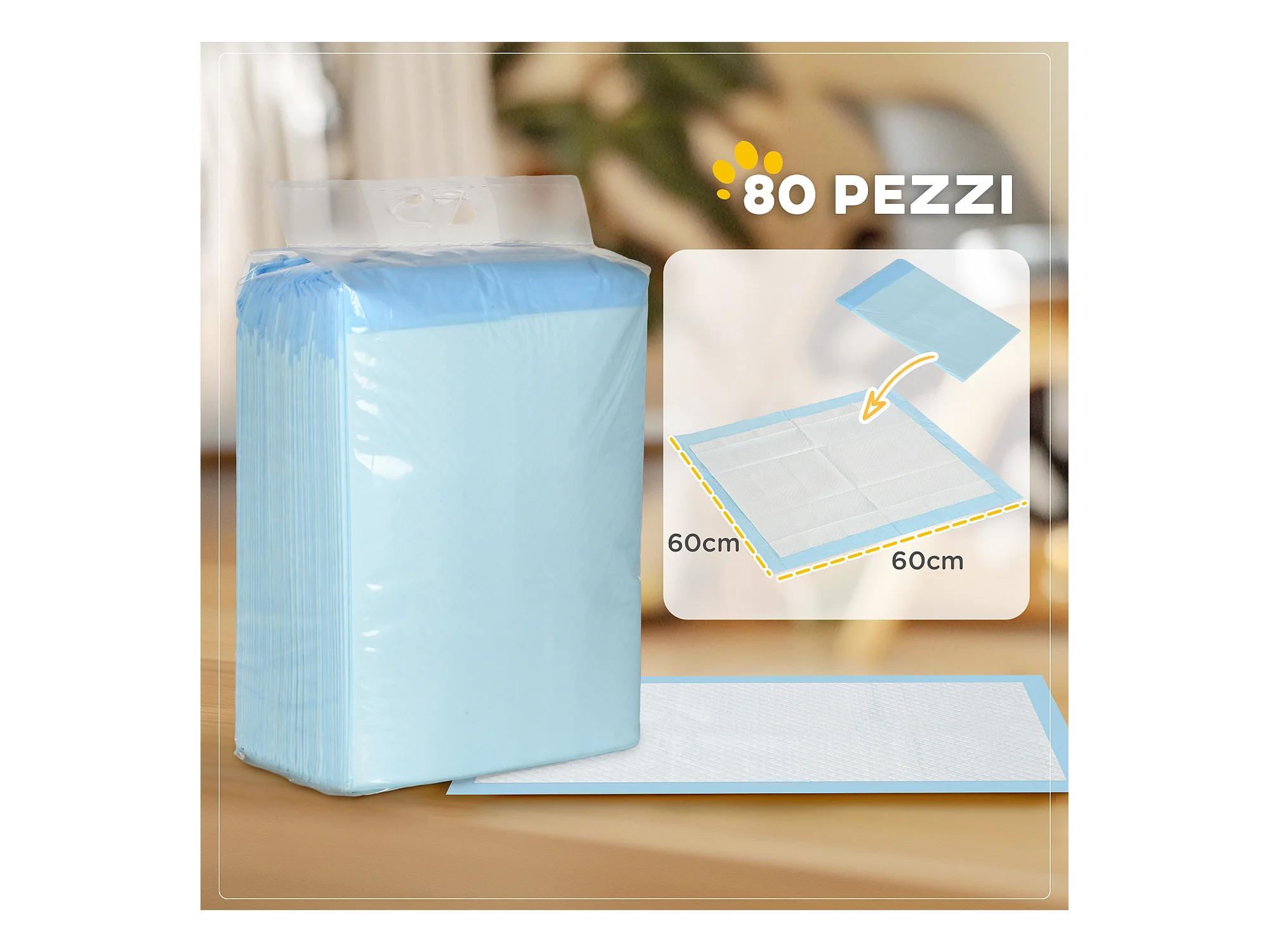 Set 80 tappetini igienici per cani a 6 strati 60x60 cm blu e bianco
