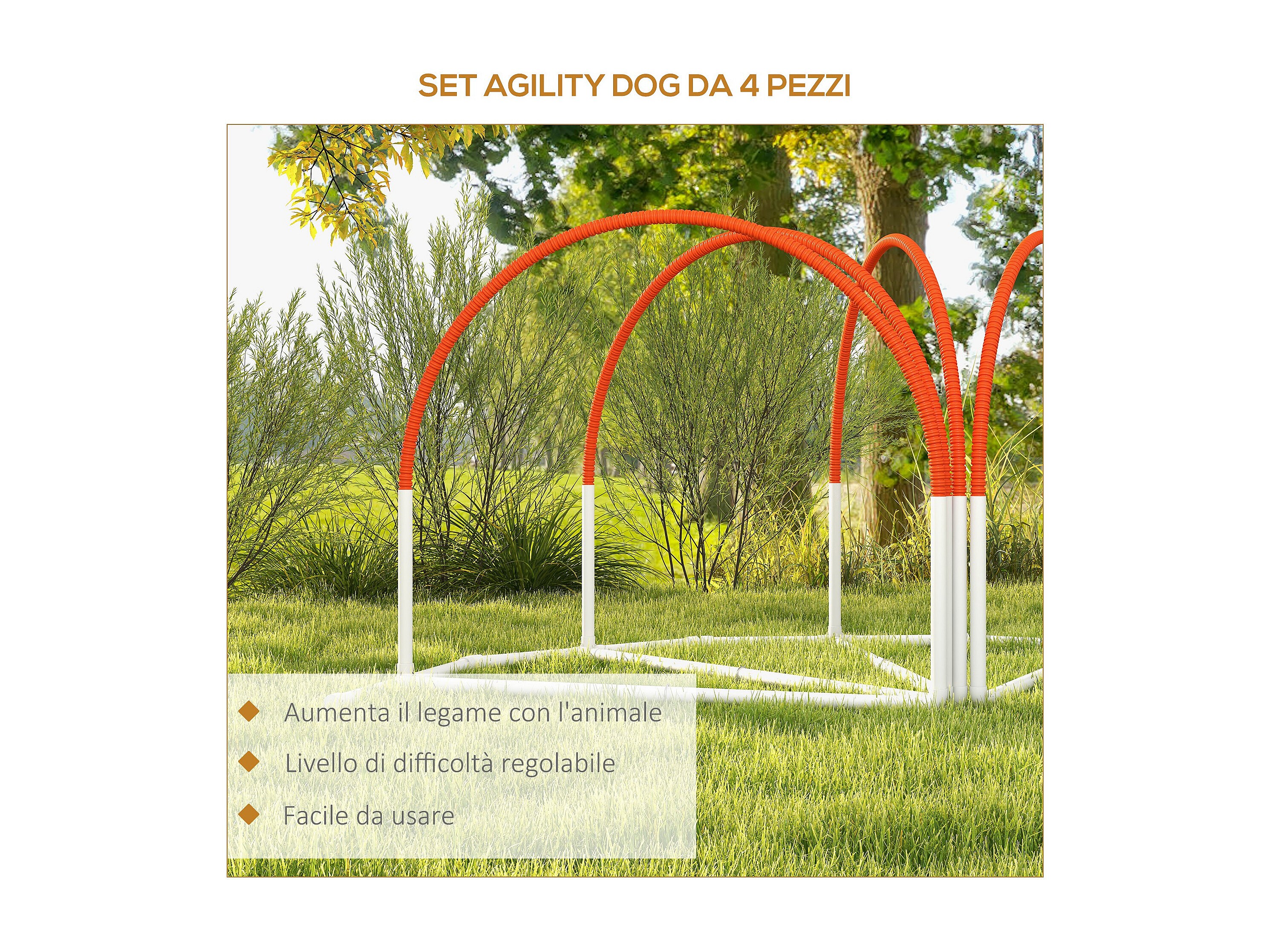 Set agility dog 4pz con 4 picchetti e borsa da trasporto bianco arancione