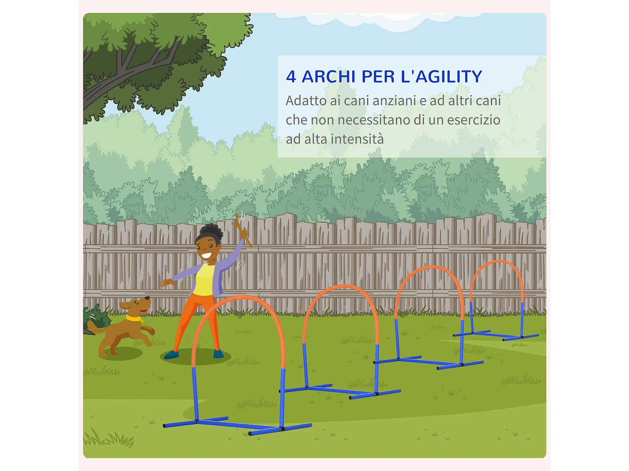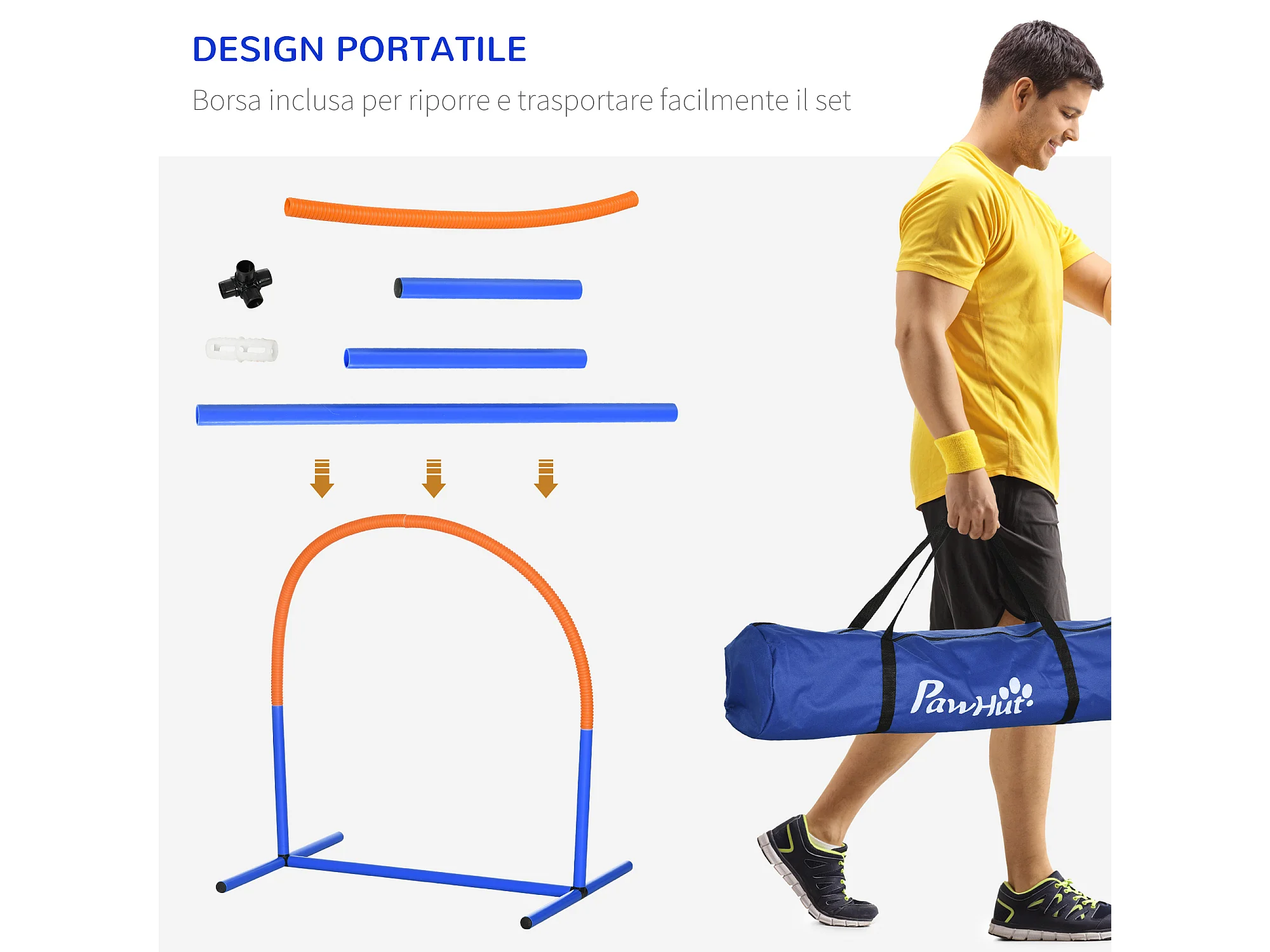 Set agility dog con 4 archi e borsa da trasporto blu e arancione