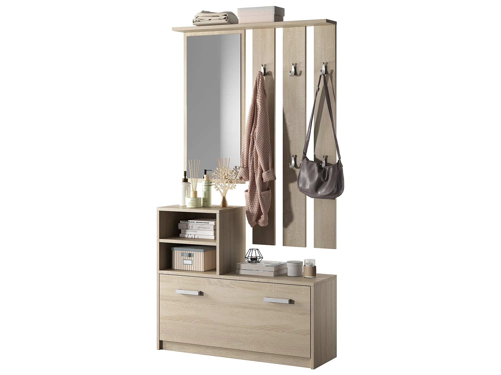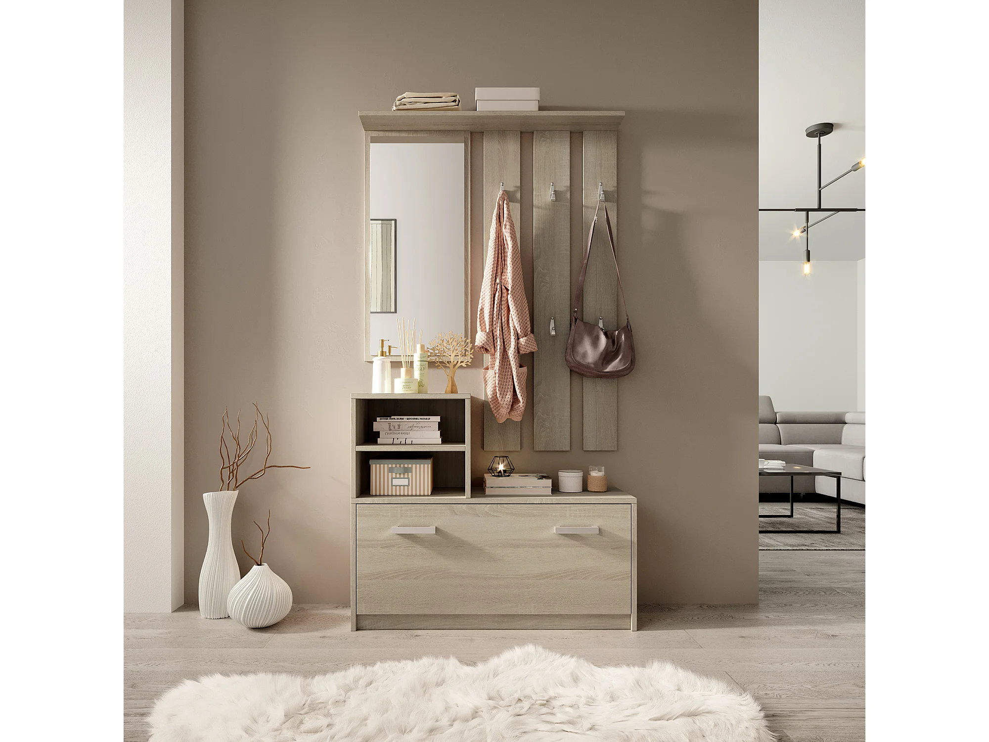 Set Arredo Ingresso / Mobile Ingresso Minimalista / Scarpiera e Appendiabiti per Corridoio / Quercia Chiara - Yesfir