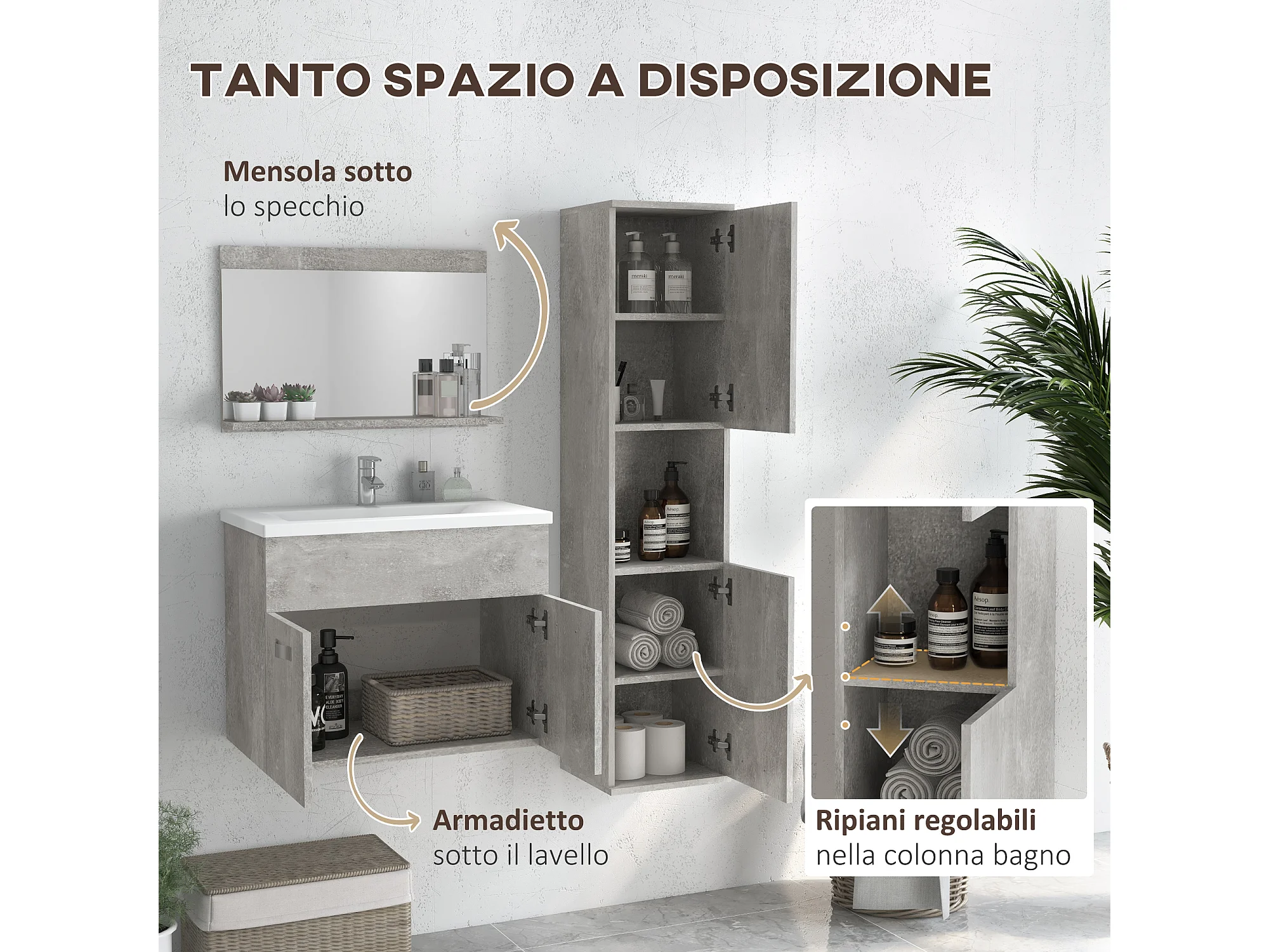 Set bagno con lavabo mobiletto colonna bagno e specchiera