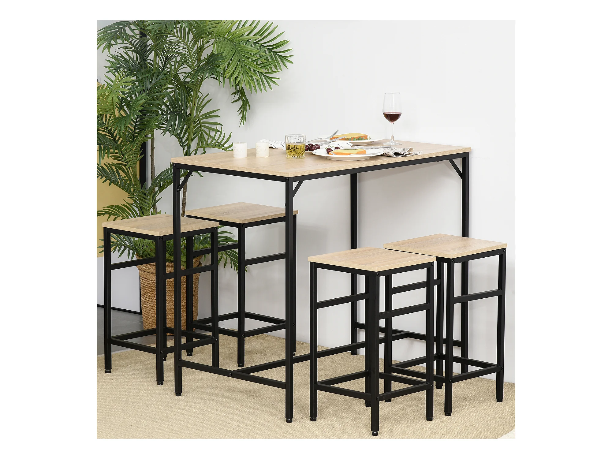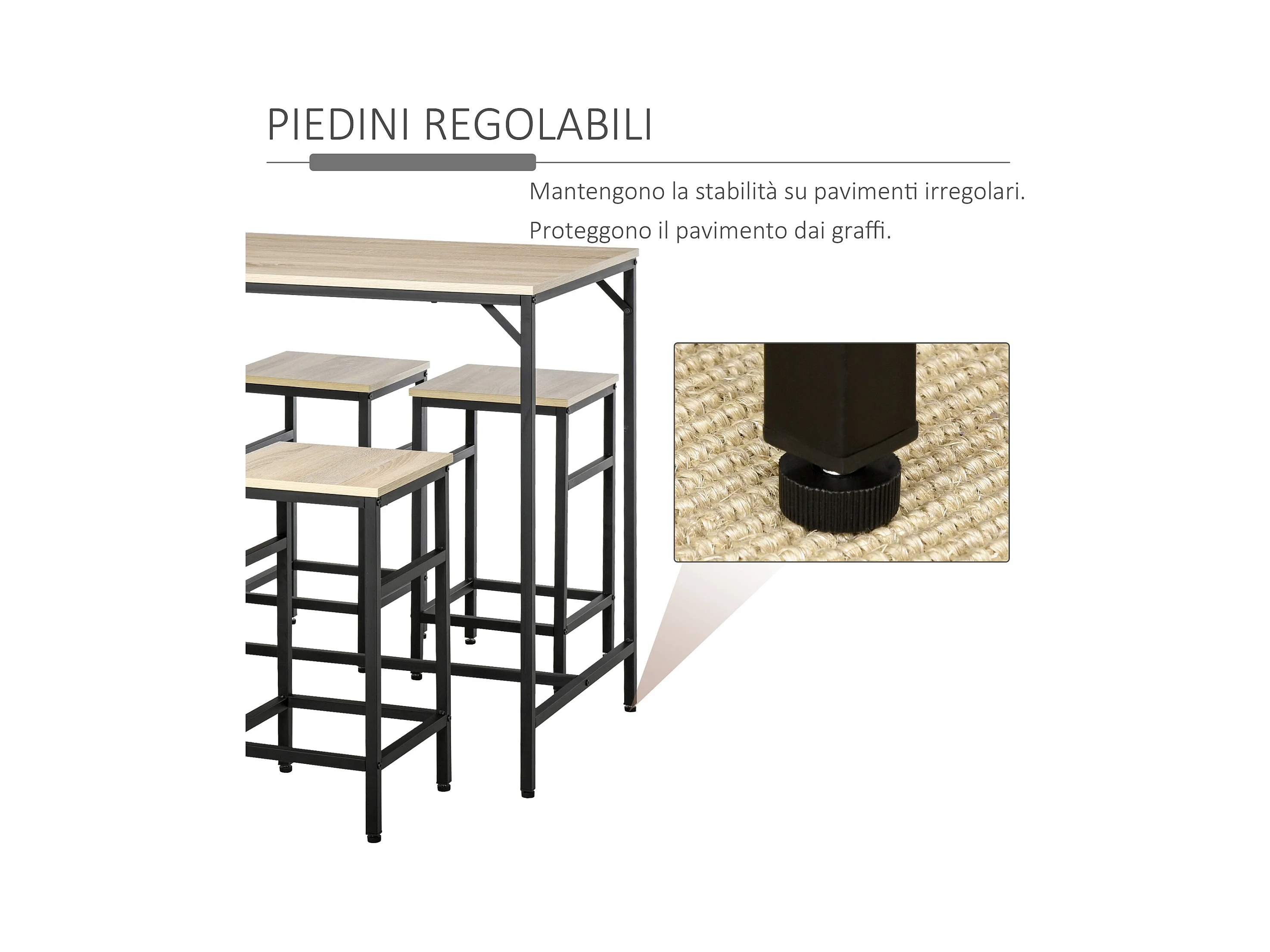 Set bancone con 4 sgabelli in metallo e legno stile industriale