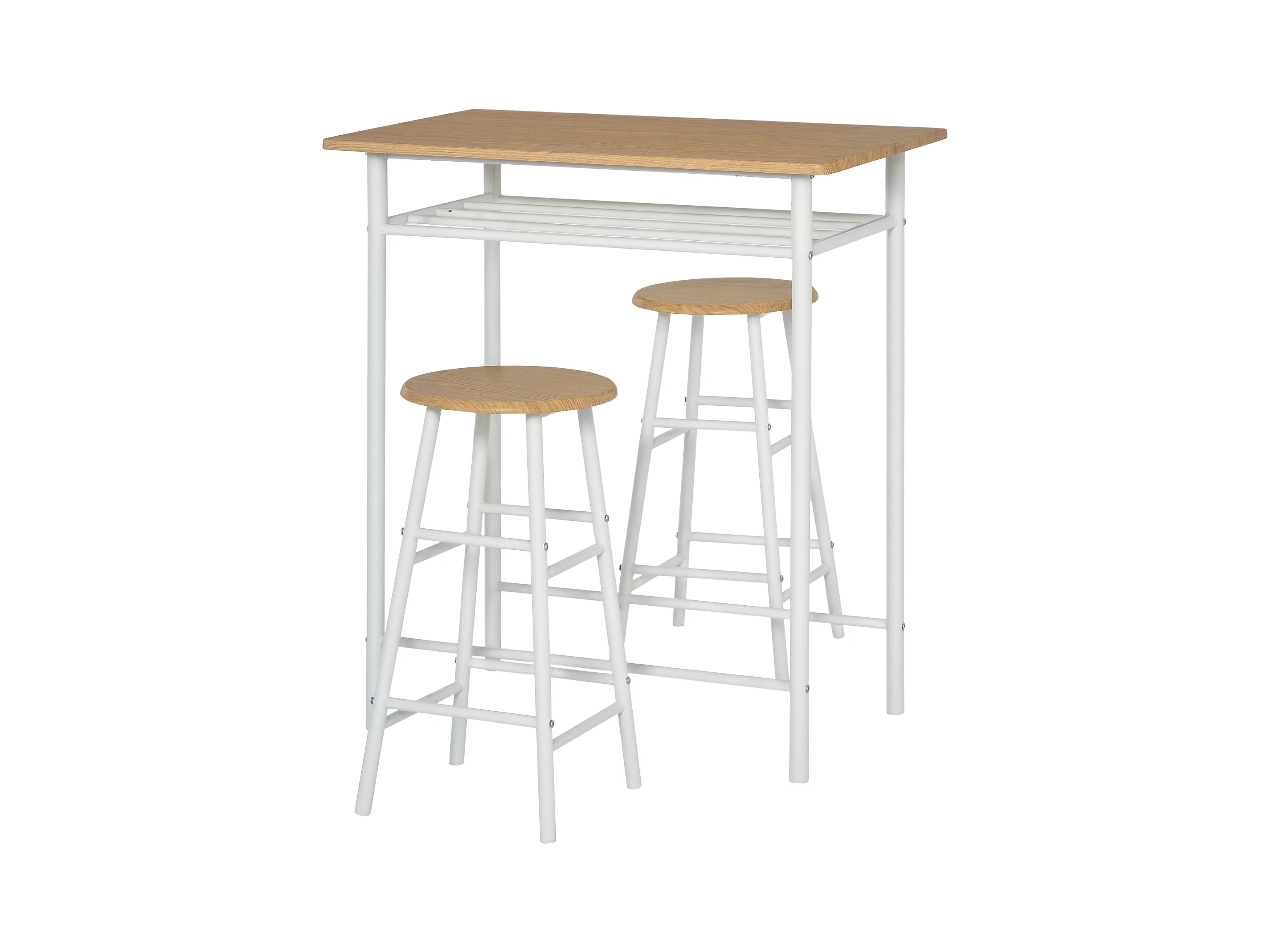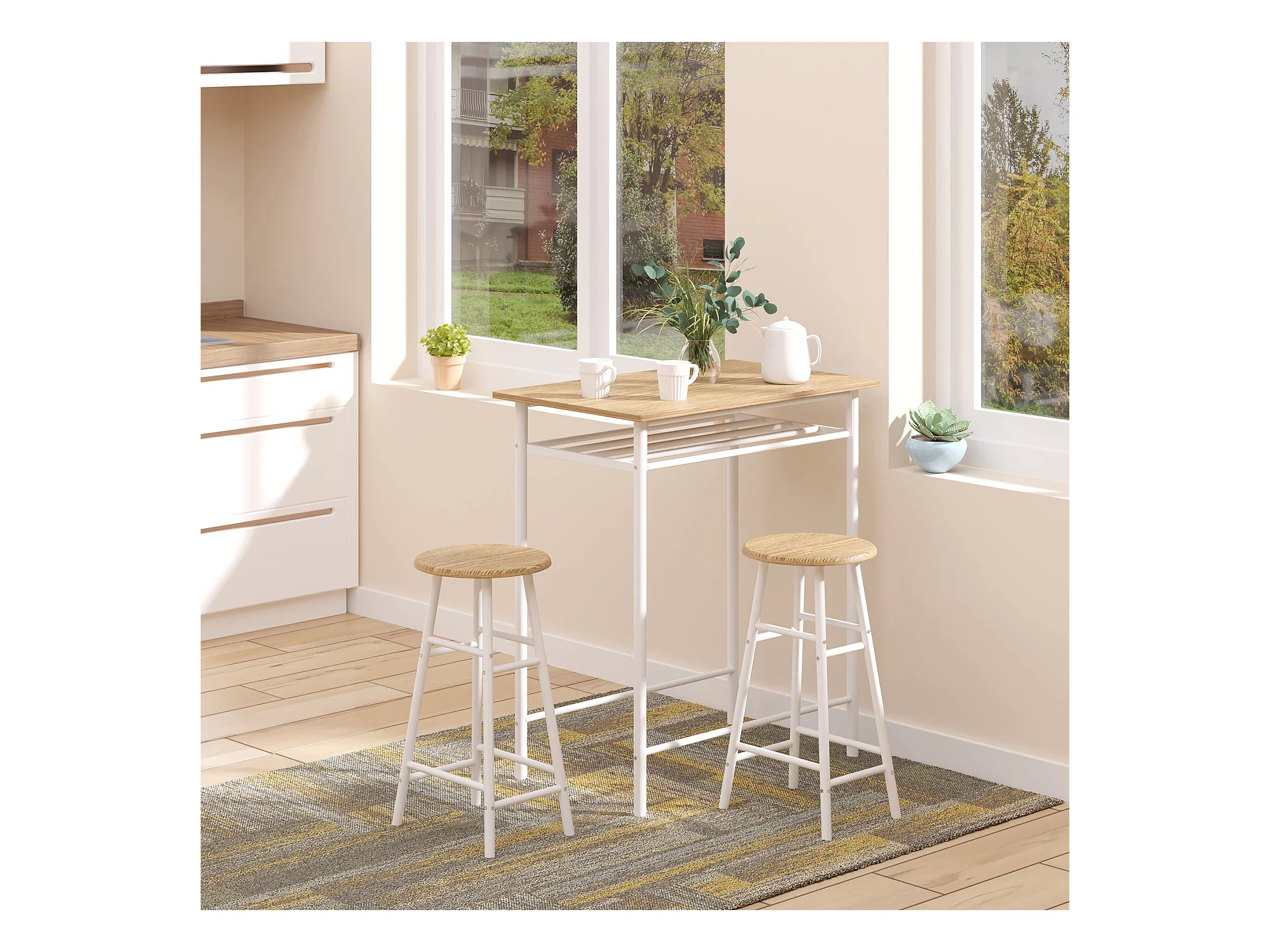 Set bancone e 2 sgabelli da bar con poggiapiedi stile nordico