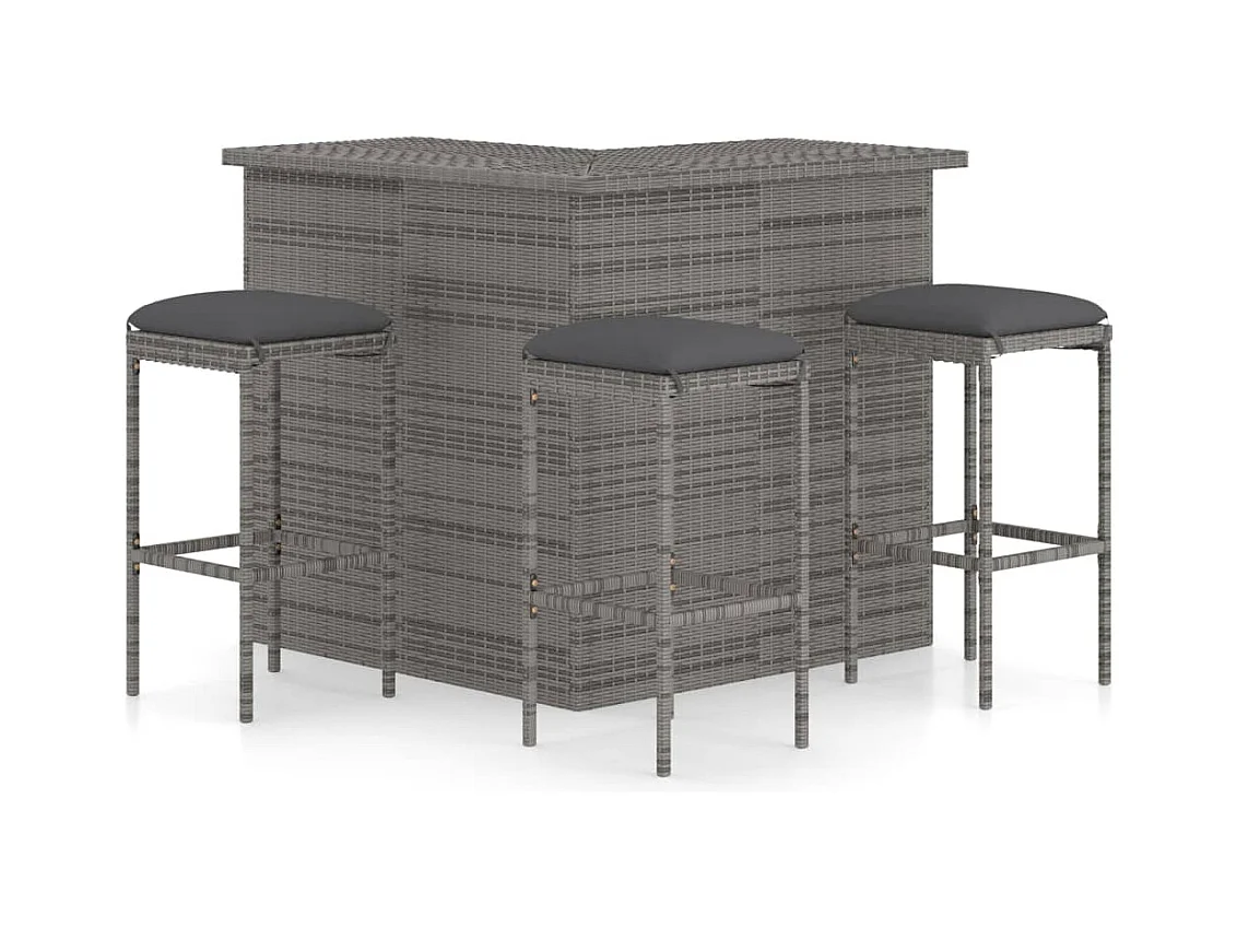 Set Bar da Giardino 4pz con Cuscini in Polyrattan Grigio