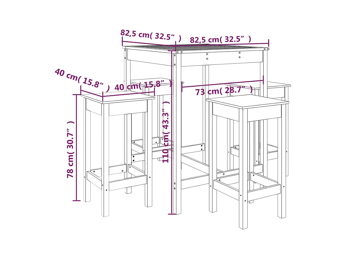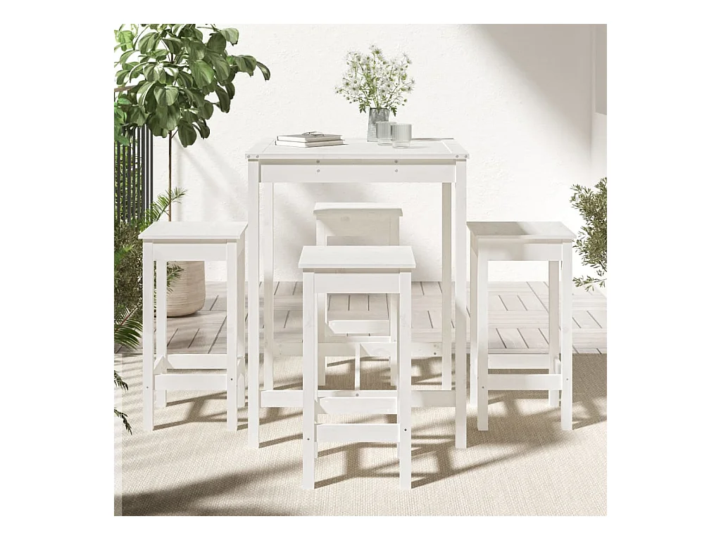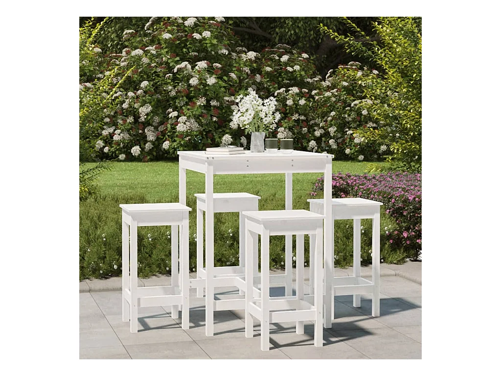 Set Bar da Giardino 5 pz Bianco in Legno Massello di Pino