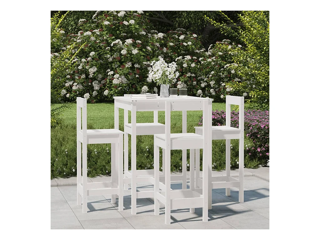 Set Bar da Giardino 5 pz Bianco in Legno Massello di Pino