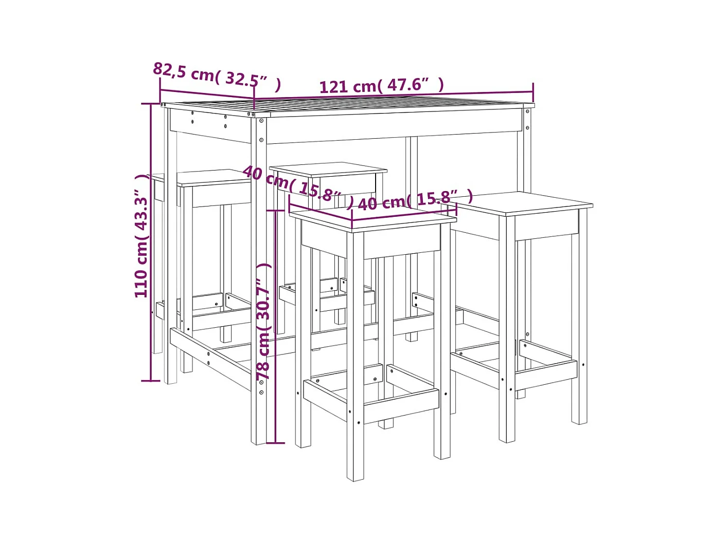 Set Bar da Giardino 5 pz in Legno Massello di Pino