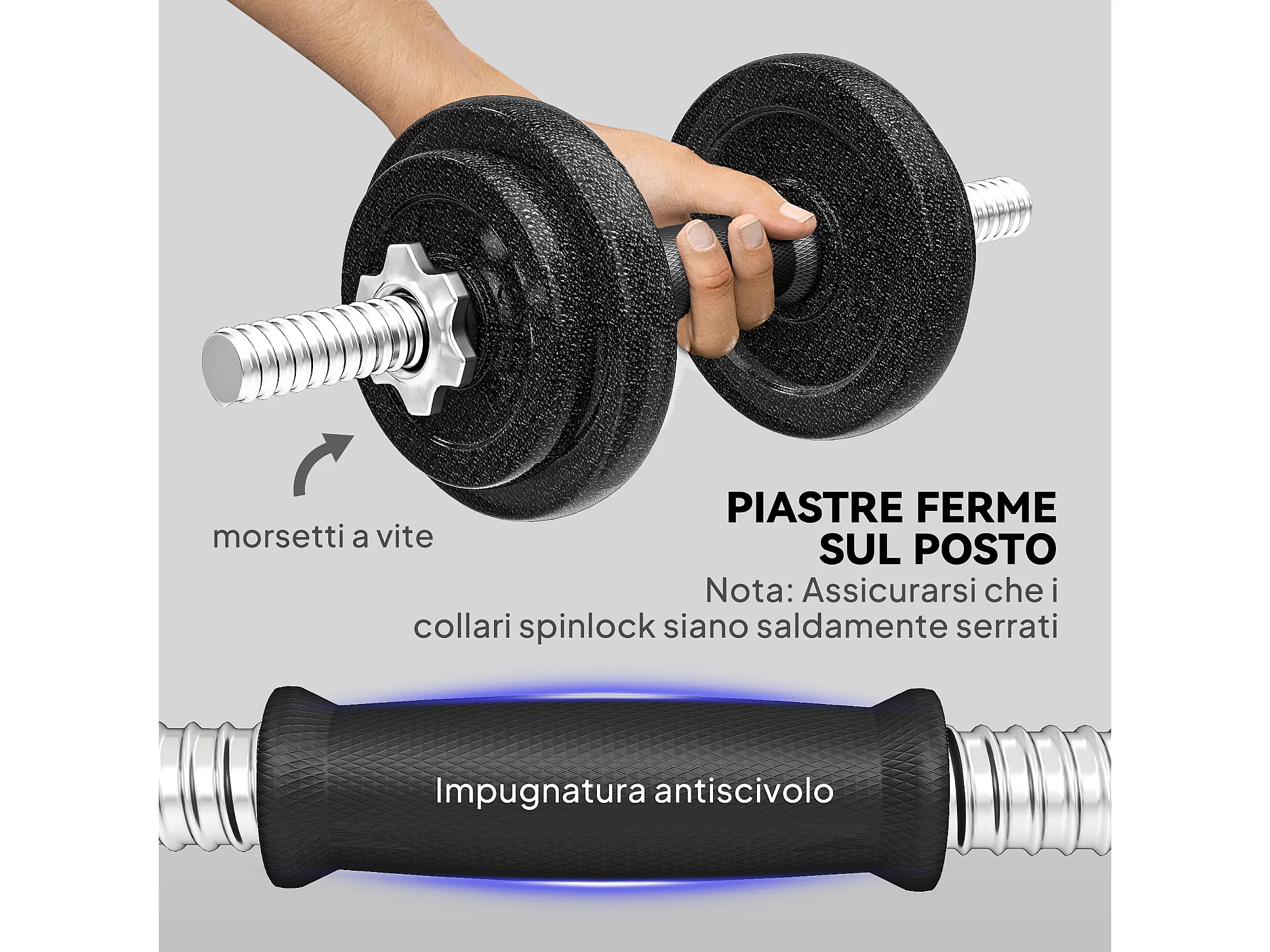 Set bilanciere 20kg regolabile e antiscivolo con 8 dischi pesi