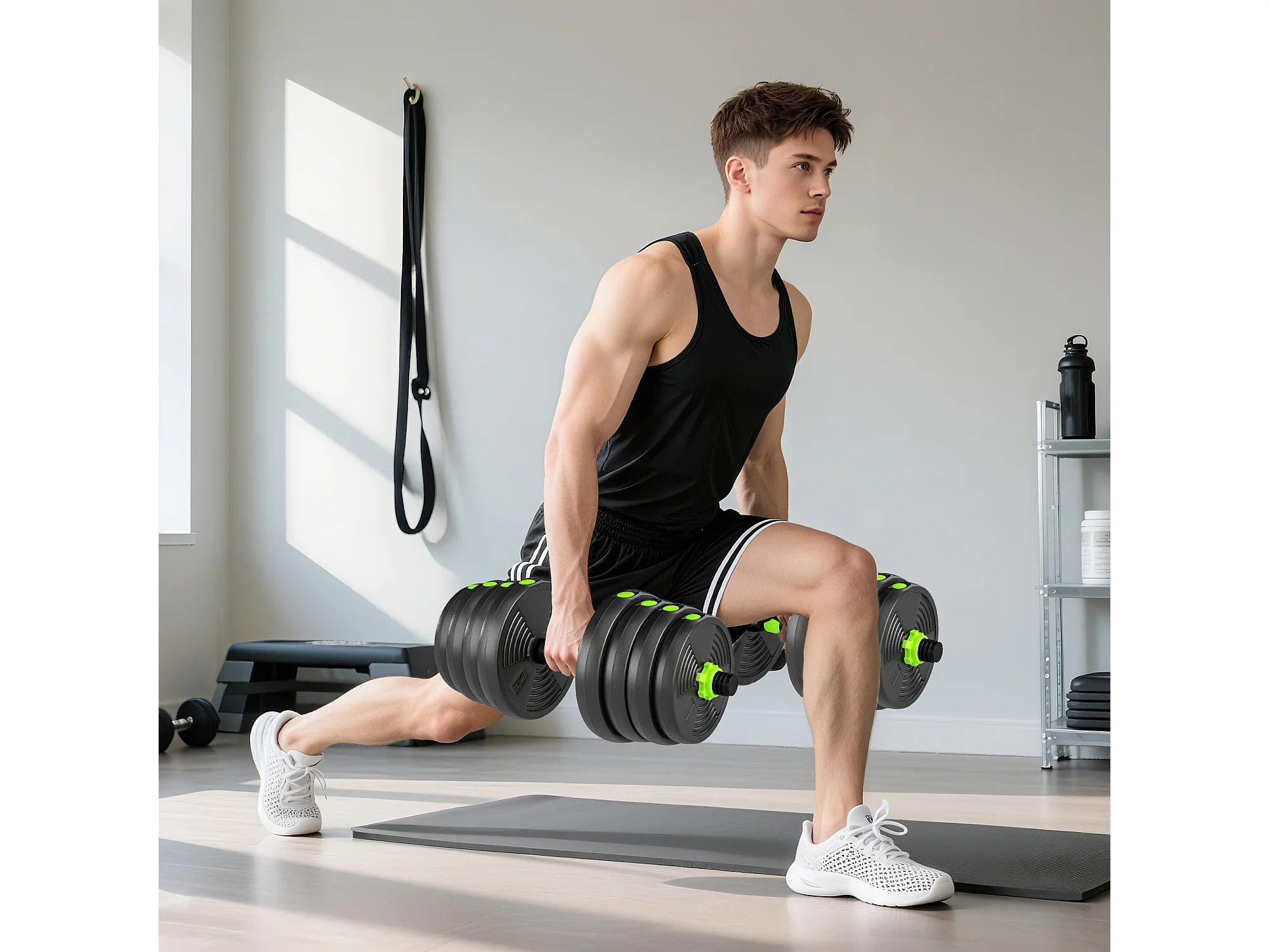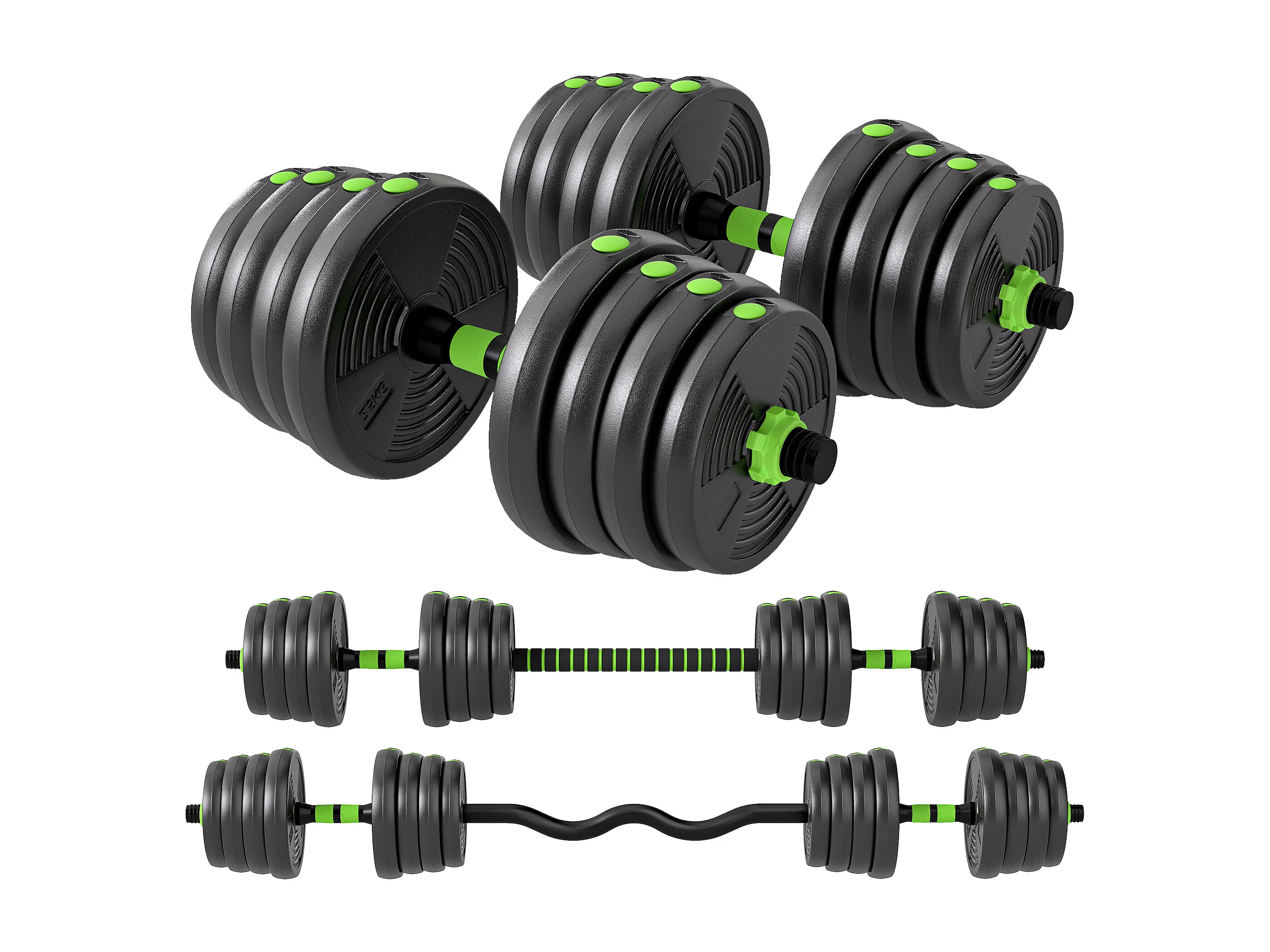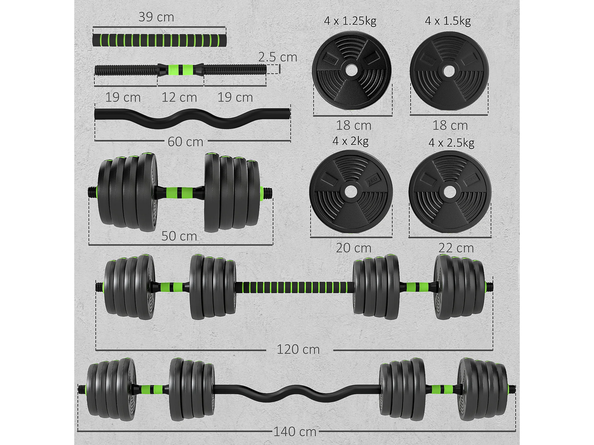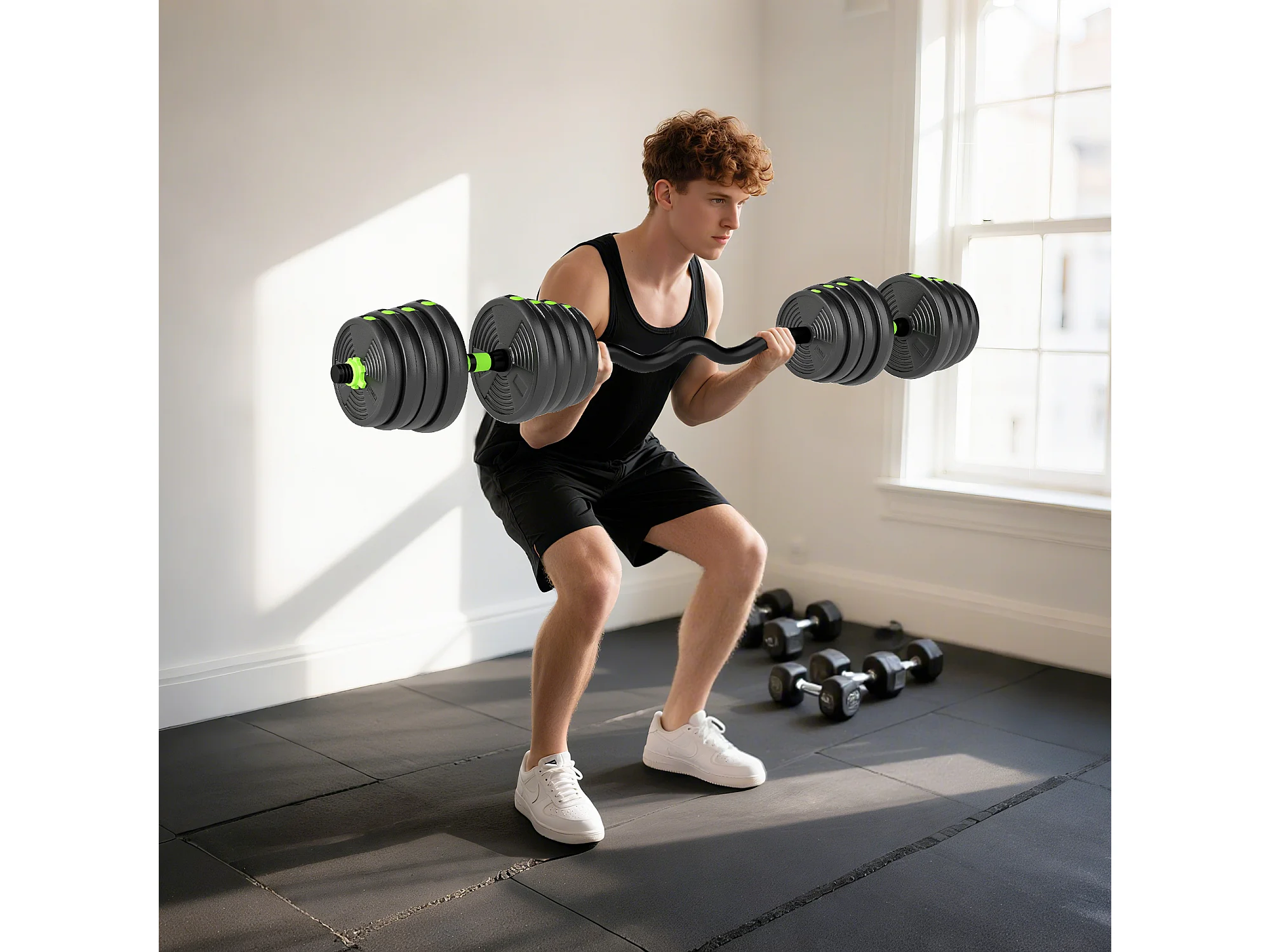 Set pesi 4 in 1 da 20kg con kettlebell manubri e bilanciere verde