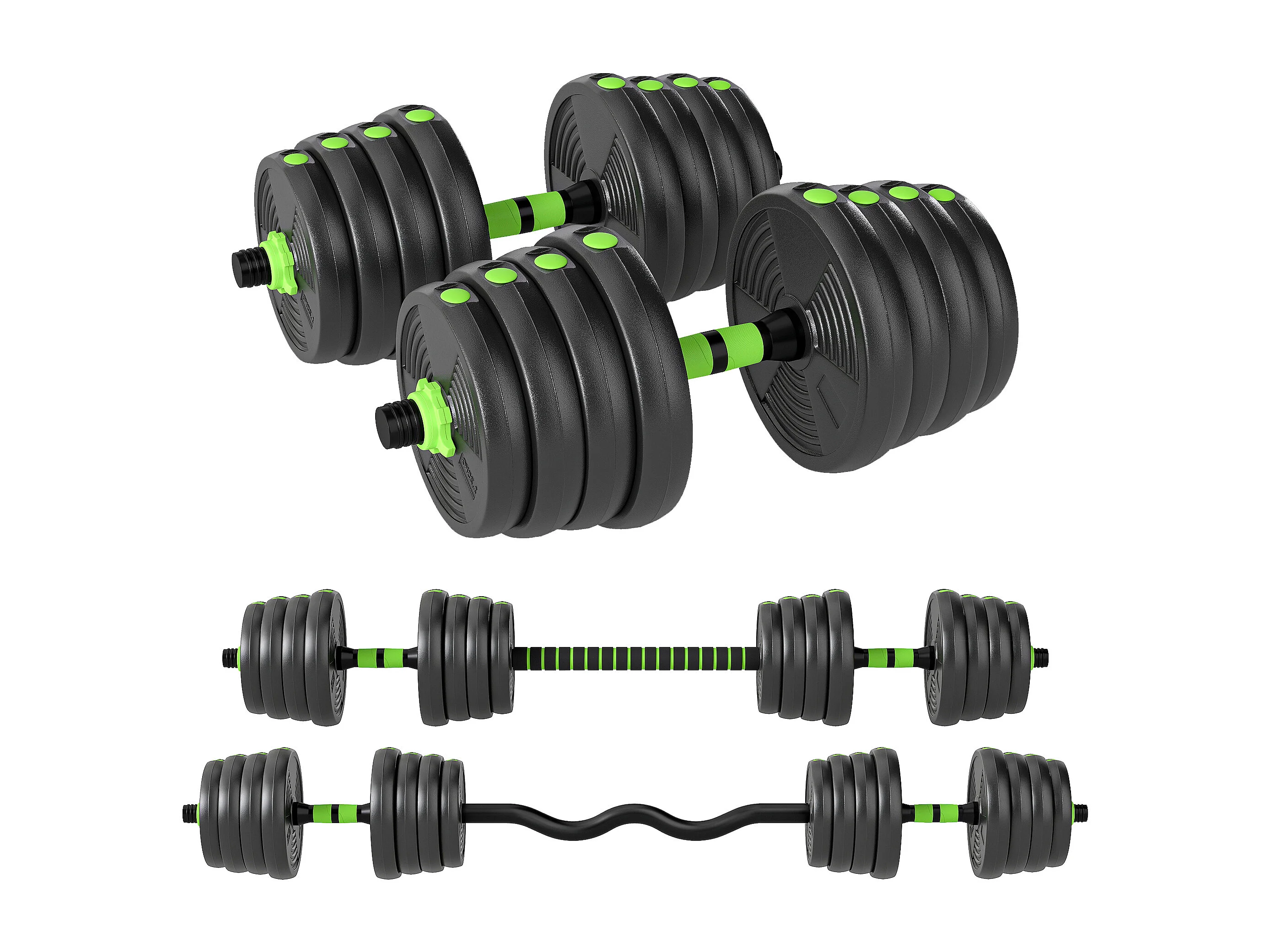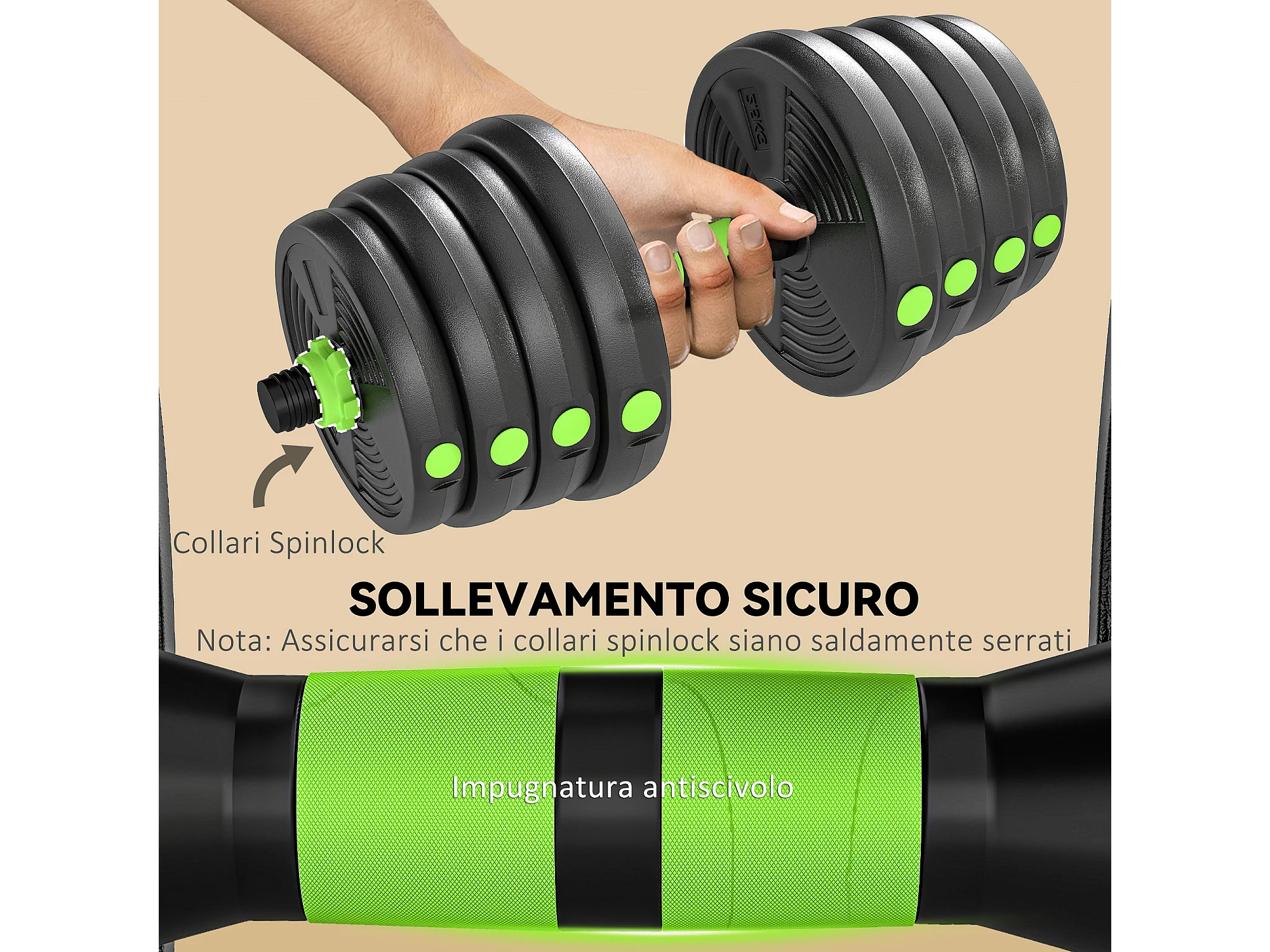 Set bilanciere con pesi 3 in 1 da 16 dischi in plastica e sabbia verde