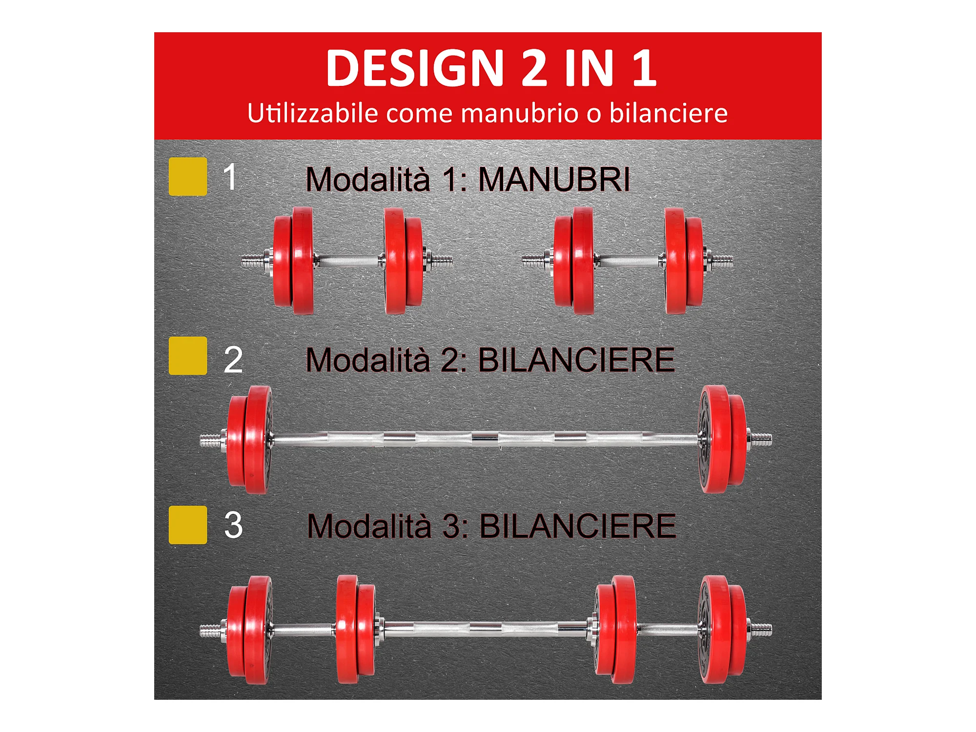 Set bilanciere e manubri pesi da 20kg dischi rivestiti in pp antigraffio
