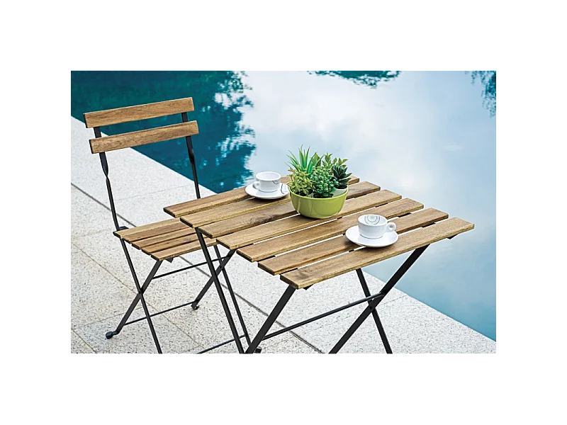 Set Bistrò In Ferro E Acacia Fsc Scura - 2 Sedie E Un Tavolo 55X54 Cm Moia