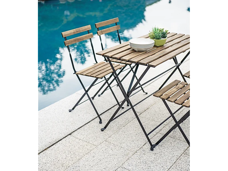 Set Bistrò In Ferro E Acacia Fsc Scura - 4 Sedie E Un Tavolo 100X54 Cm Moia