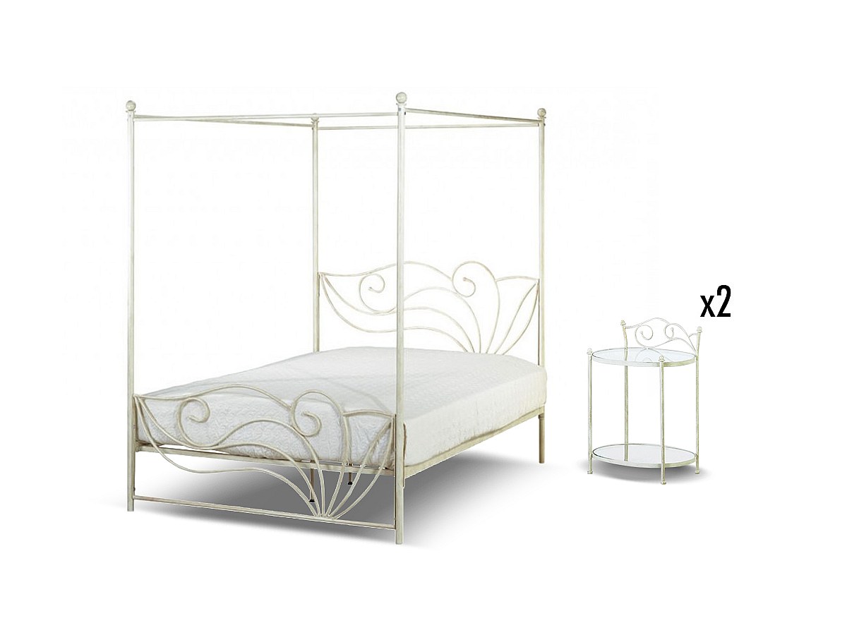 Set CAMERA Letto a baldacchino 140 x 190 e 2 comodini in Metallo stile ferro battuto - IMPERATRICE