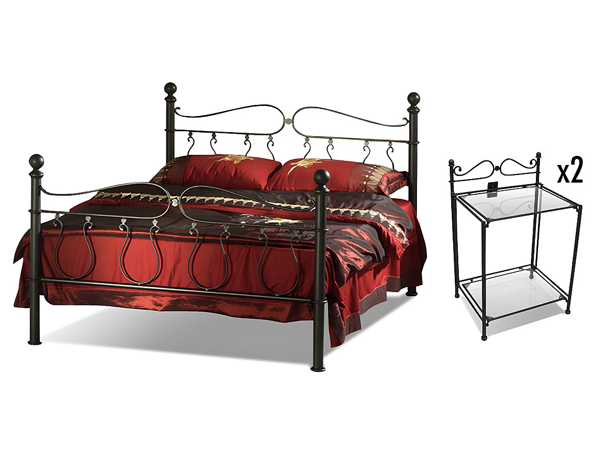 Set CAMERA Letto matrimoniale 180 x 200 cm e 2 comodini in Metallo stile ferro battuto - MARQUISE