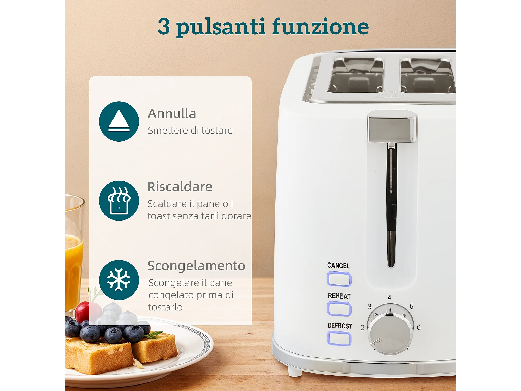 Set colazione tostapane a fessura larga a 2 fette con 7 livelli di doratura