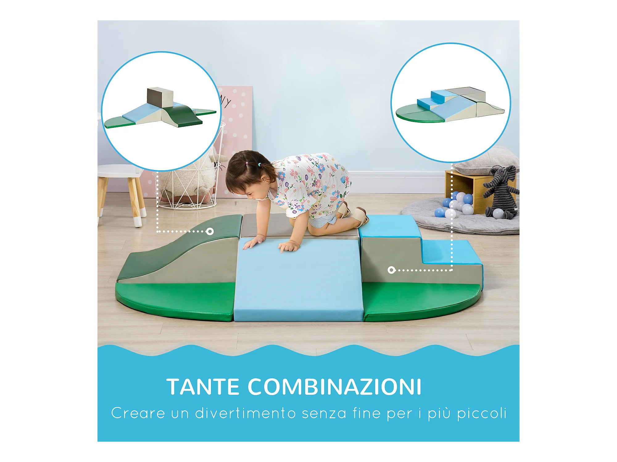 Set da gioco per bambini 12-36 mesi da 7 blocchi in pu epe multicolore