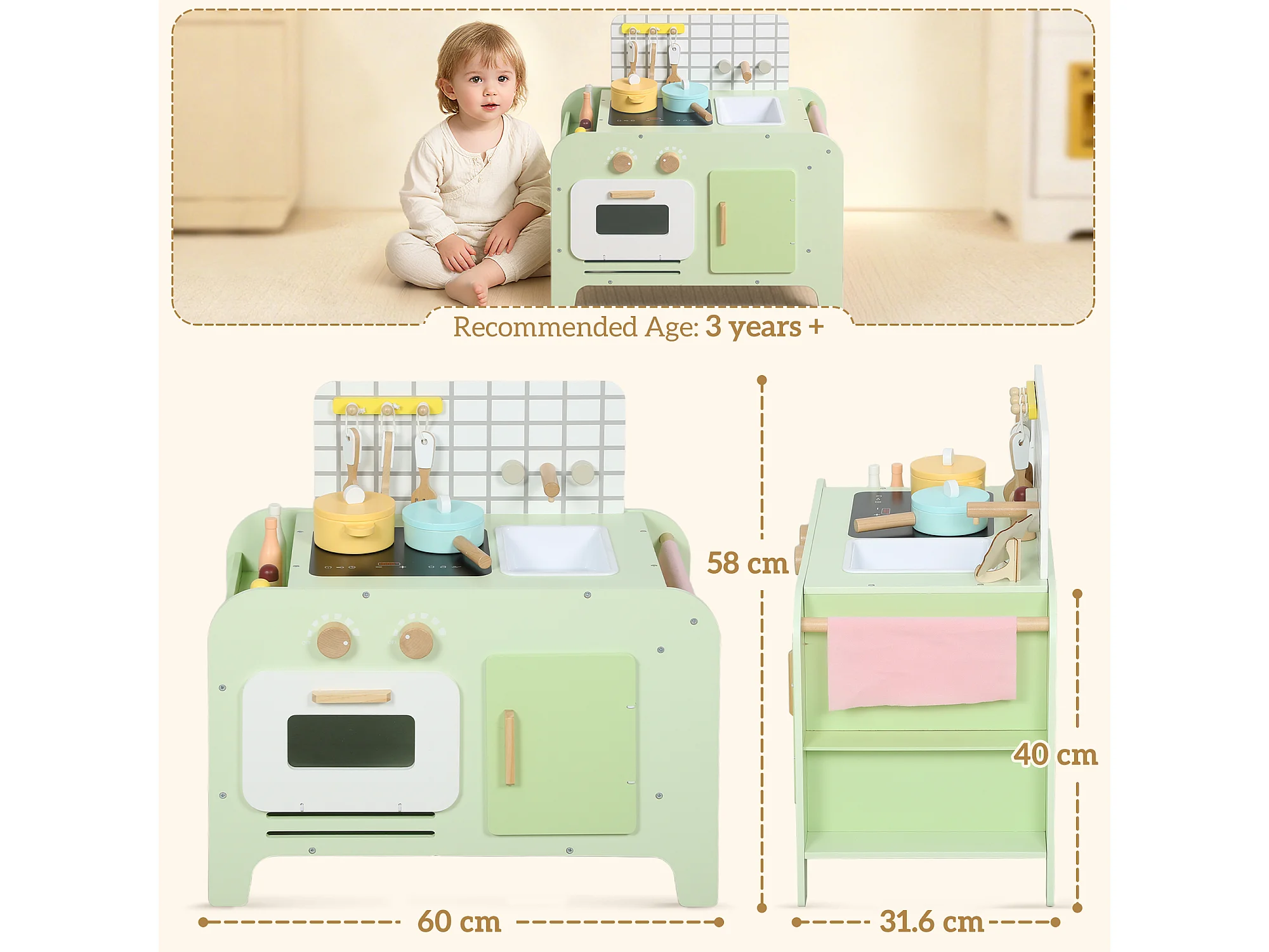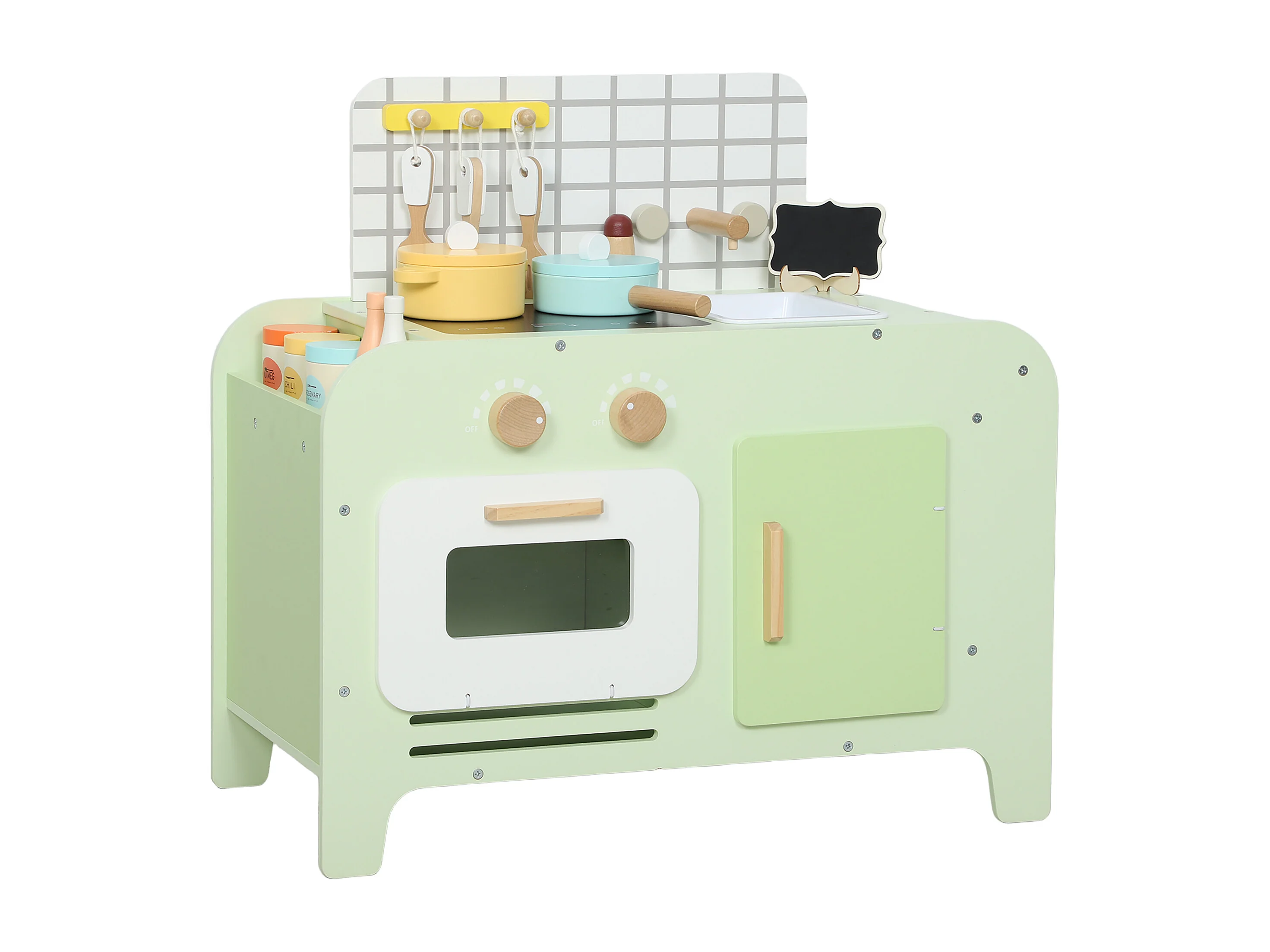 Set cucina giocattolo per bambini con 15 accessori in legno verde
