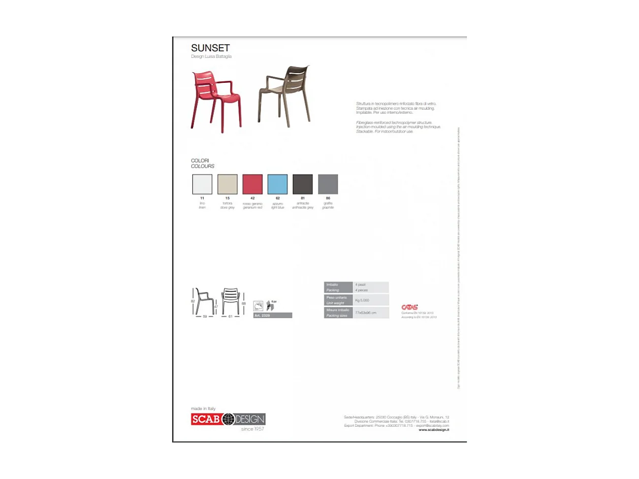 SET DA 4 SEDIA SUNSET TECNOPOLIMERO SCAB DESIGN MADE IN ITALY - Lino 11
