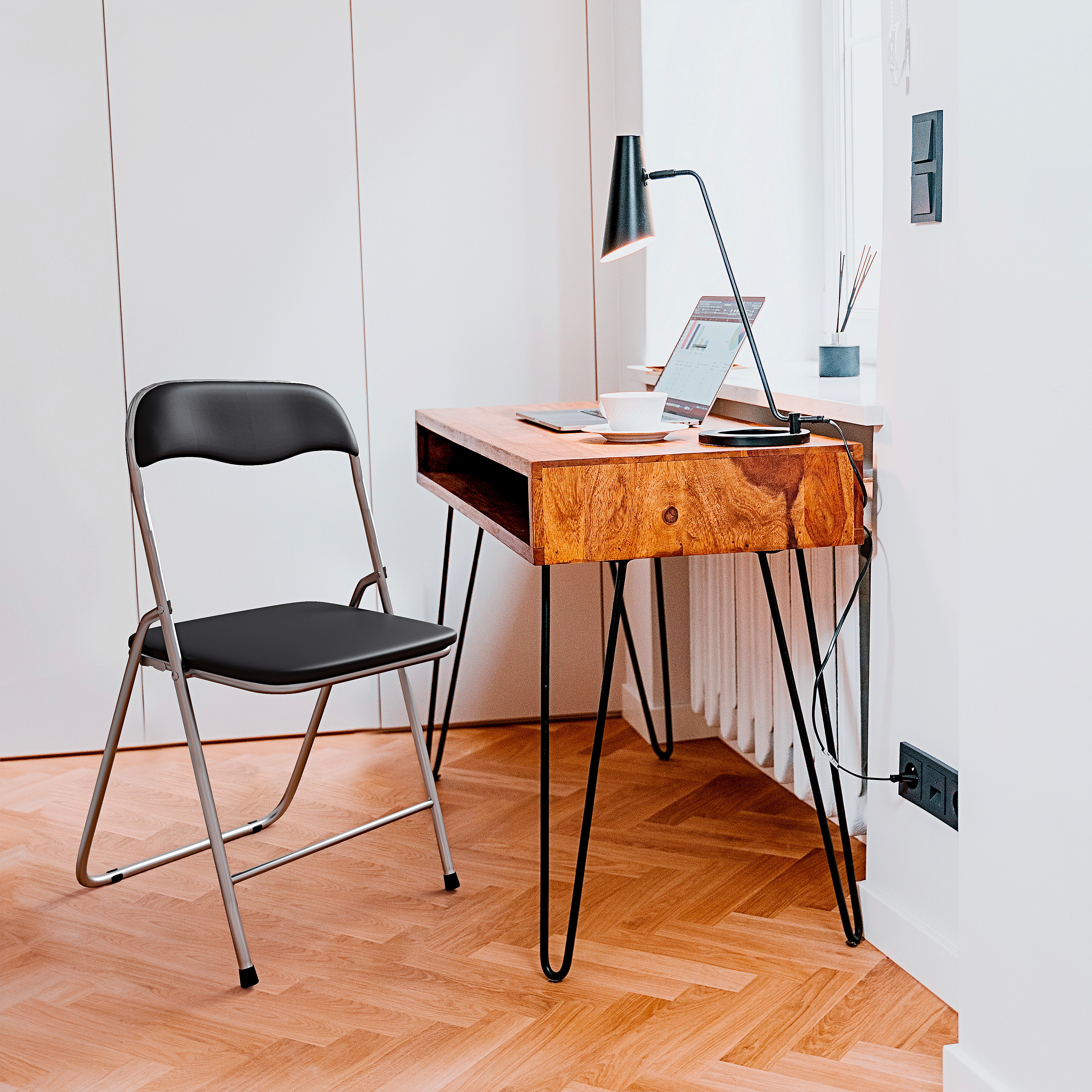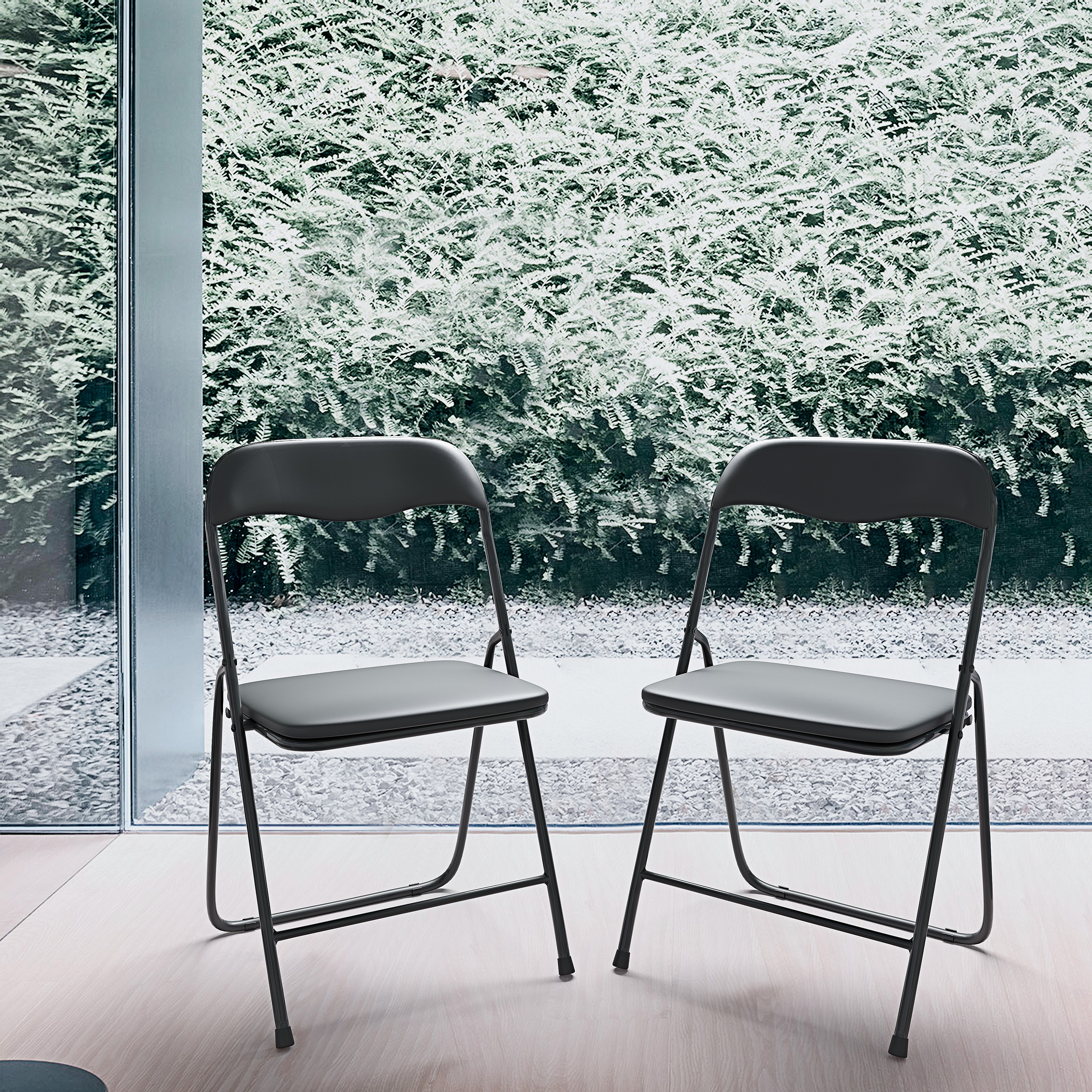Set 6 Sedia Pieghevole Slim Opaca Metallo Sedie Salvaspazio Ufficio Casa Campeggio Salotto Cucina Ecopelle Comoda Seduta Imbottita 78x44x44 cm Nero