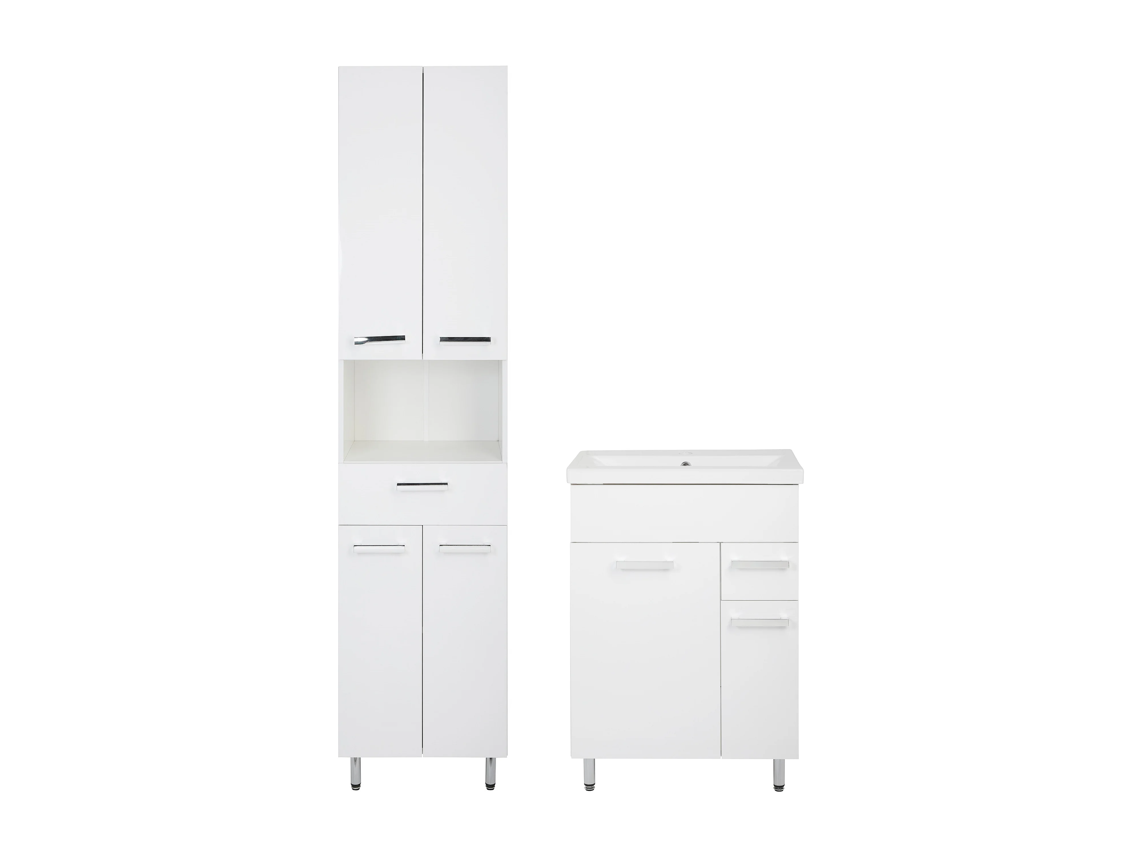 Set da bagno bianco, modello a terra, 60 cm, mobile con lavabo, colonna 50 cm, Lupo