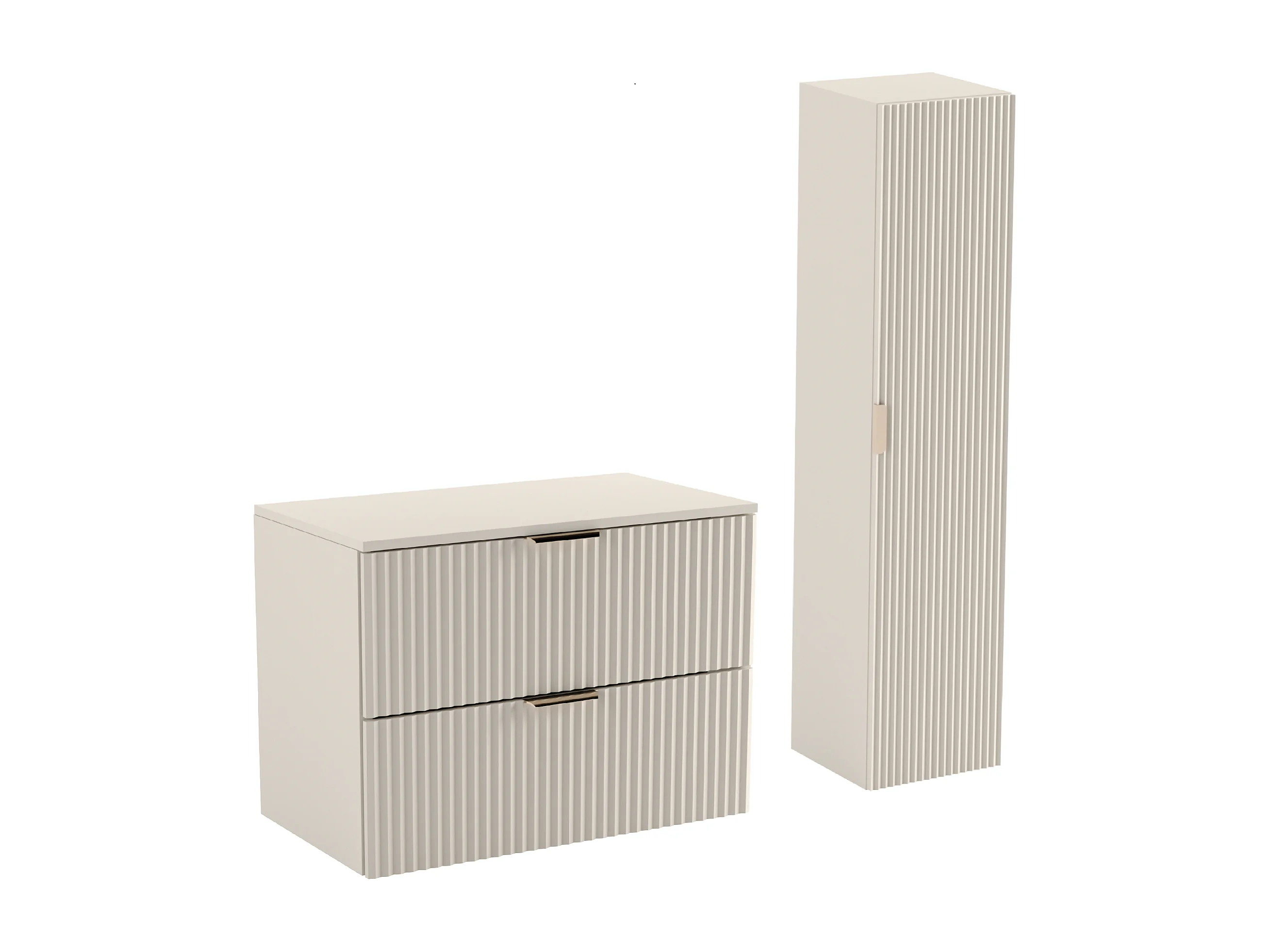Set da bagno in cashmere 80 cm Mobile Piano di lavoro Colonna Frontali scanalati