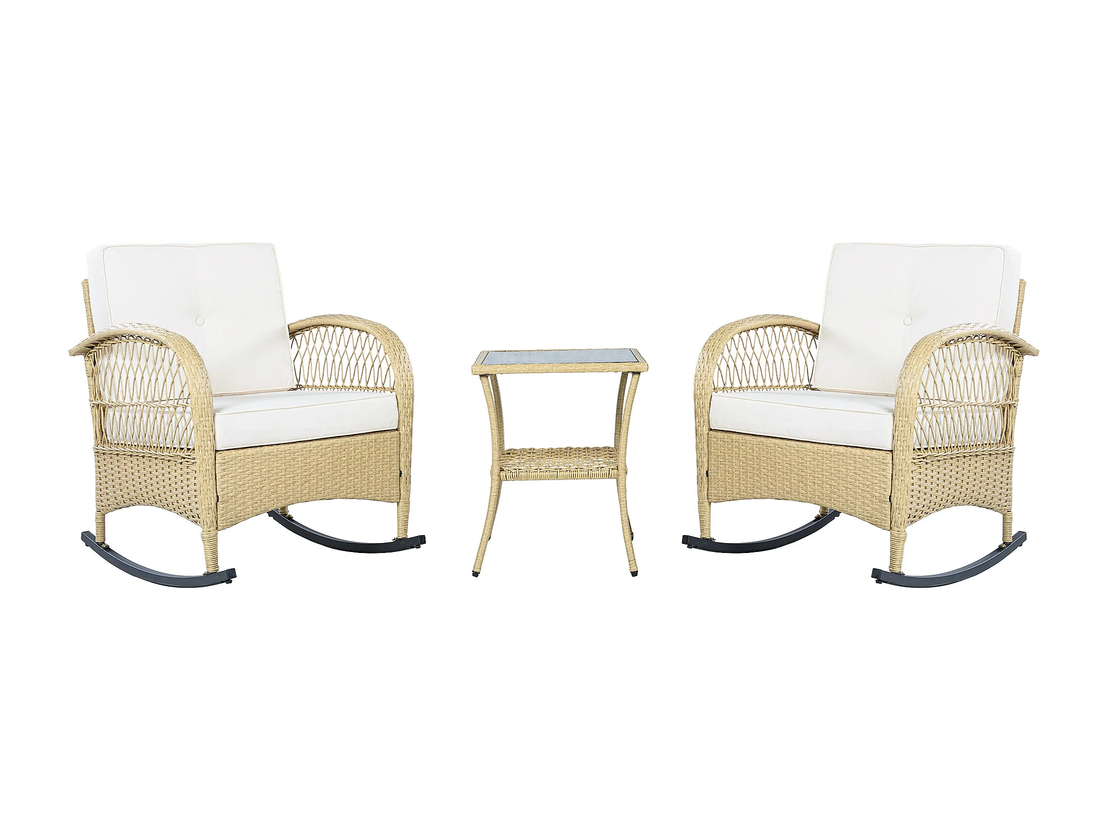 Set da balcone in rattan da 3 pezzi - Cuscini beige