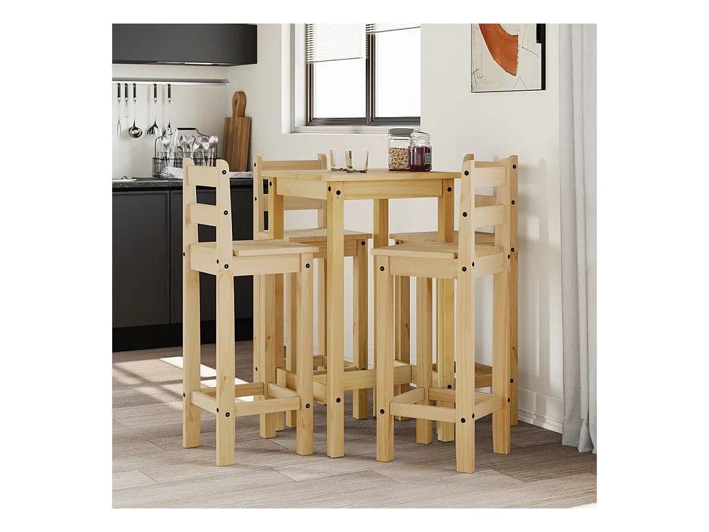 Set da bar da 5 pezzi. Legno di pino massiccio