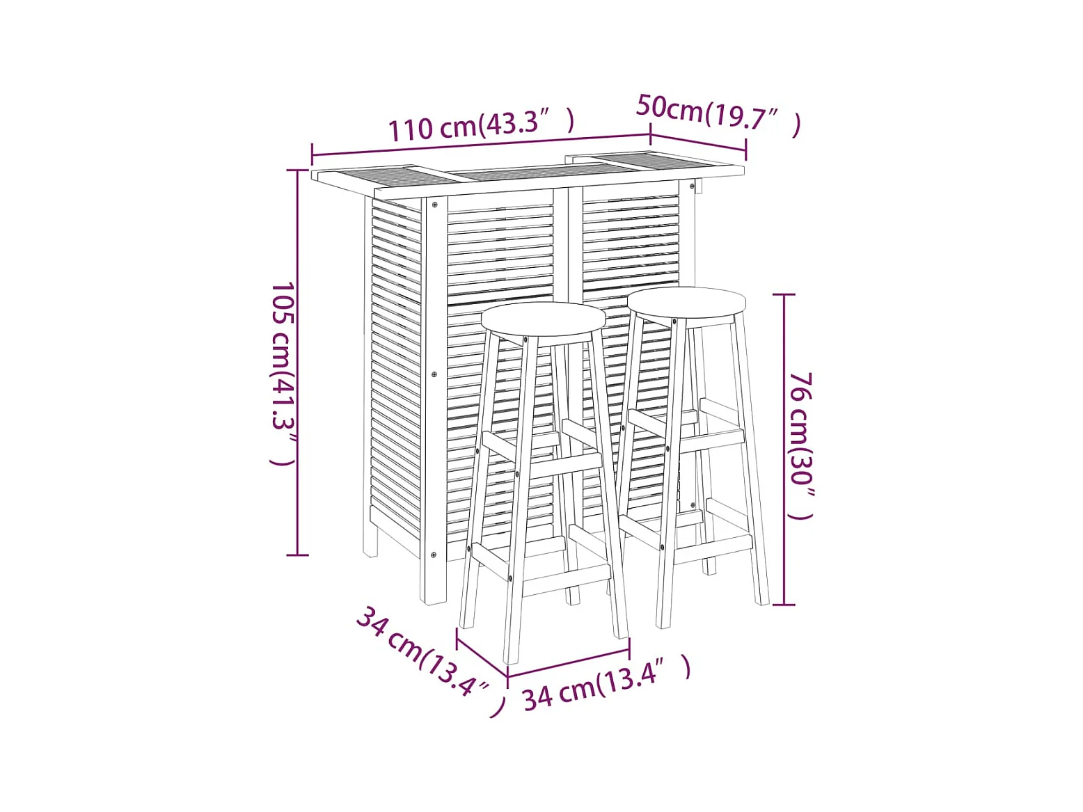 Set da Bar per Giardino 3 pz in Legno Massello di Acacia