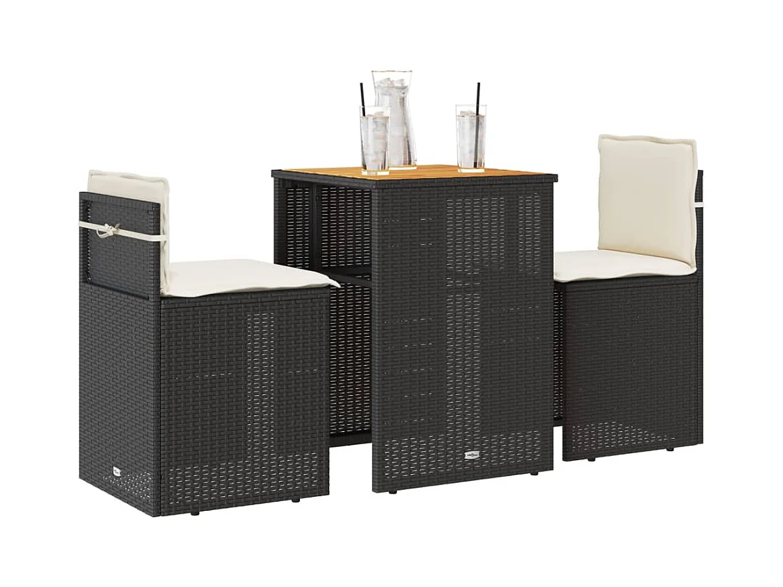 Set da Bistrot 3 pz Nero in Polyrattan e Legno Massello Acacia