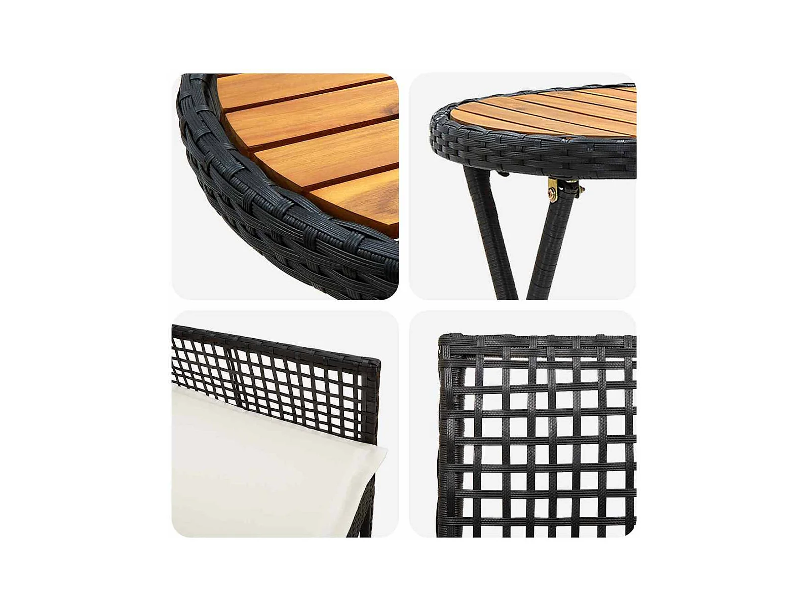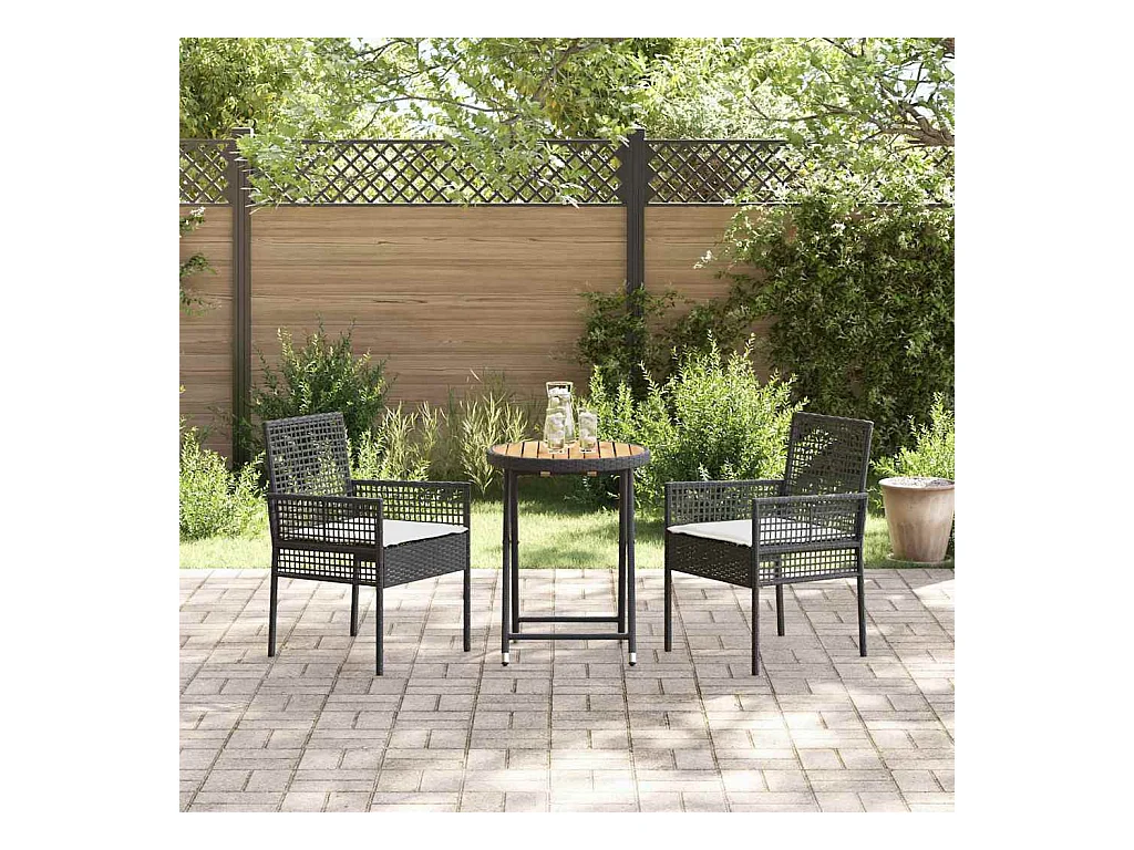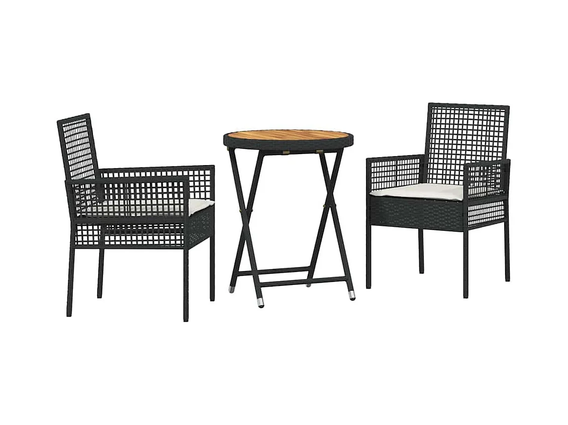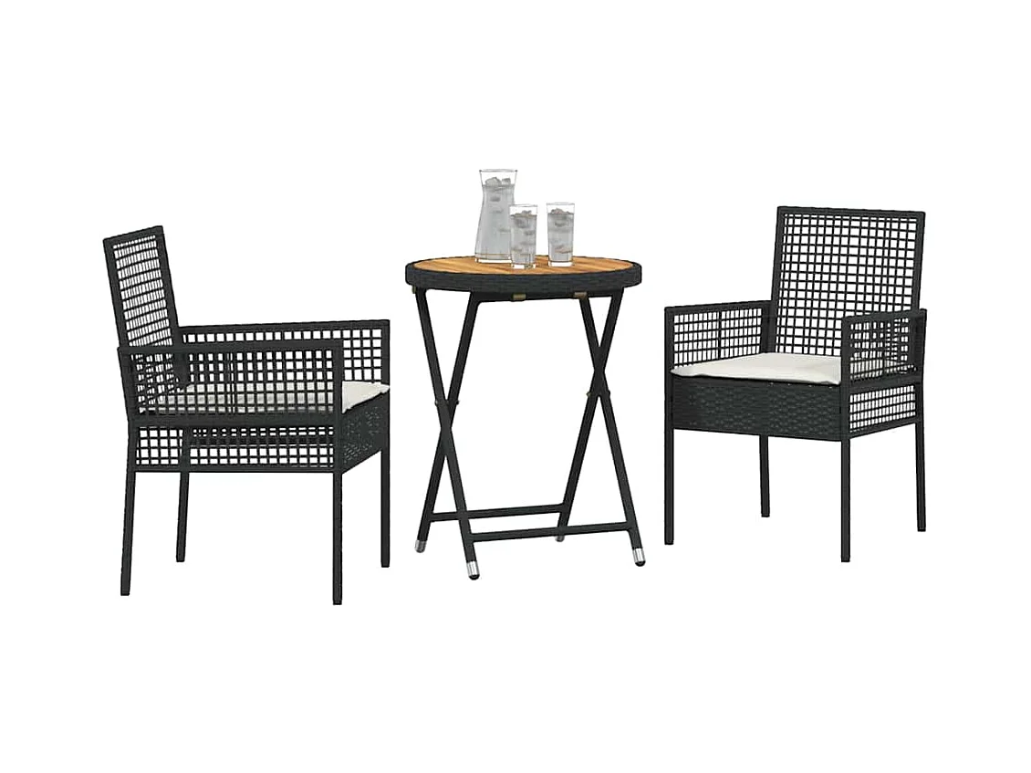 Set da bistrot da giardino 3 pezzi con cuscini in polyrattan nero