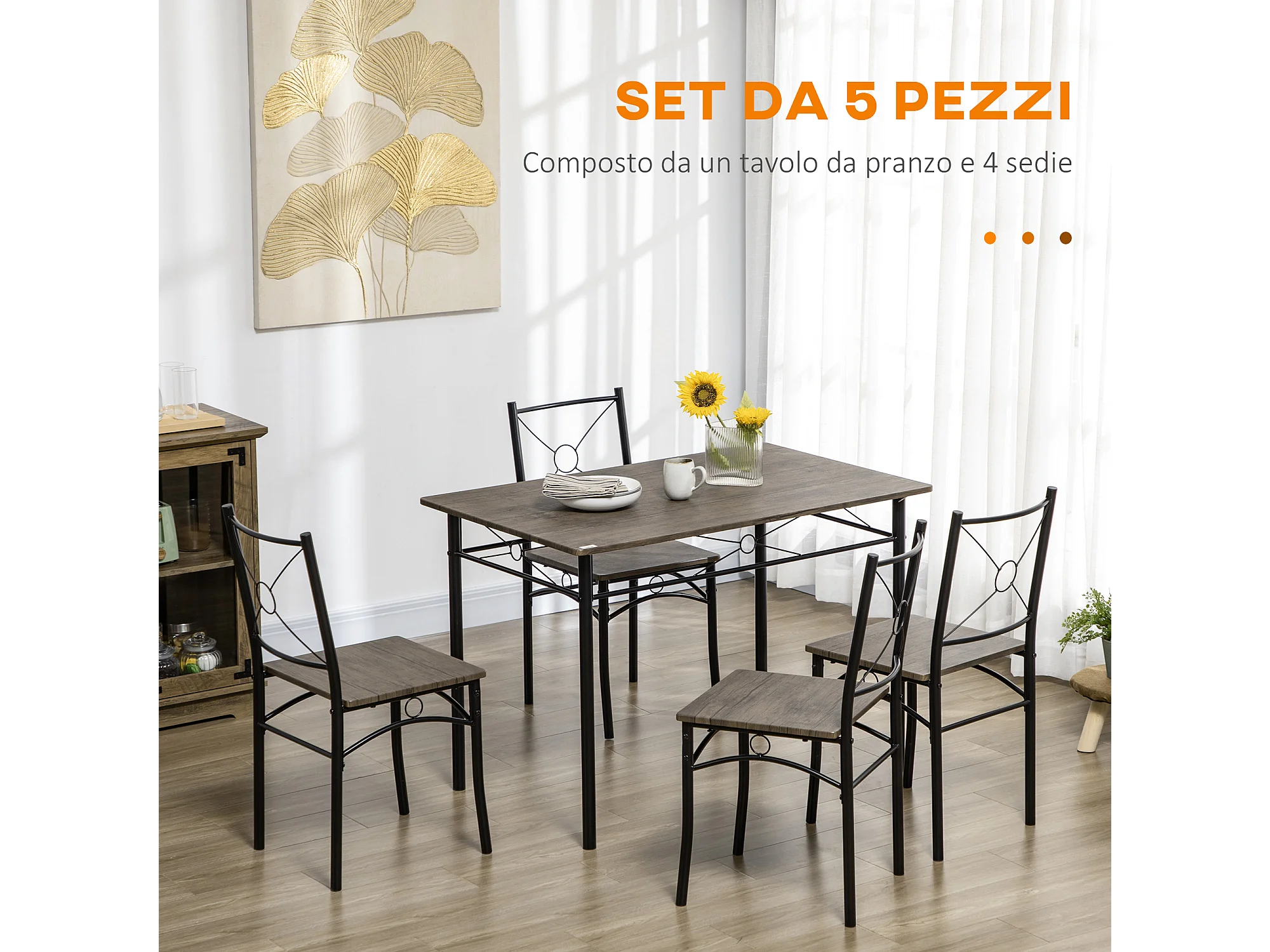 Set da cucina con tavolo da pranzo e 4 sedie in mdf e metallo