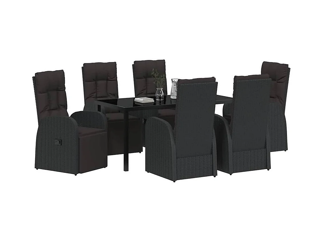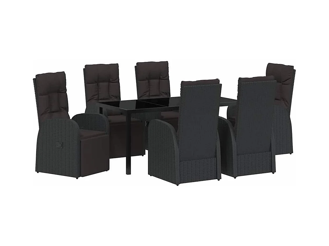 Set da pranzo da giardino 7 pezzi con cuscini - Polyrattan nero