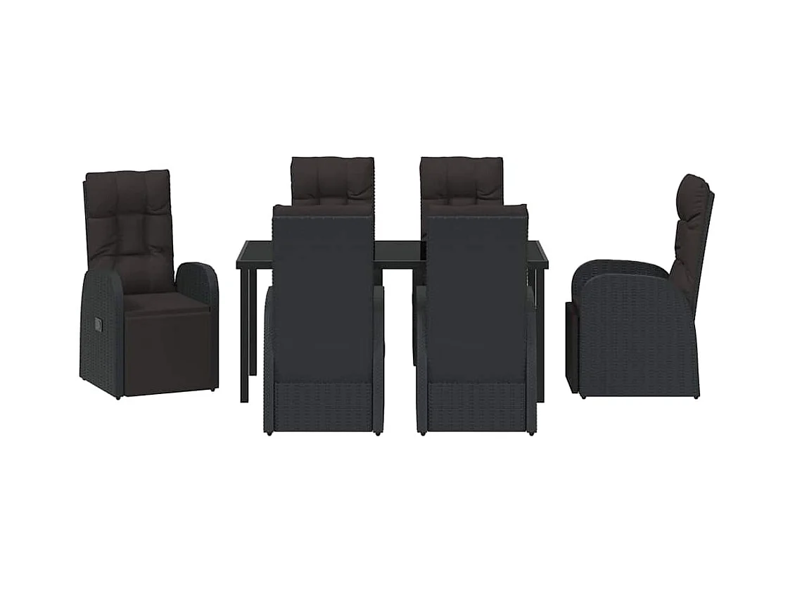 Set da cucina da giardino da 7 pezzi con cuscini in rattan nero PE
