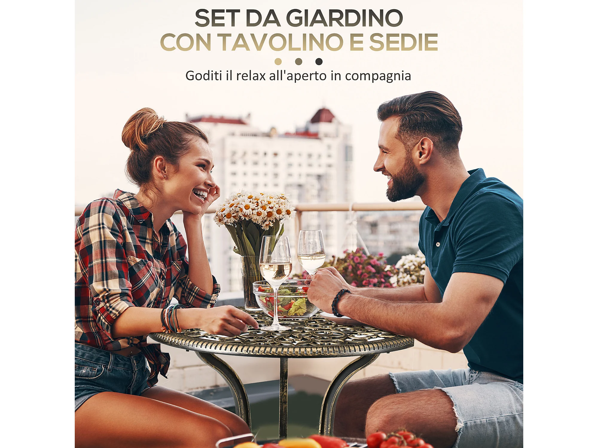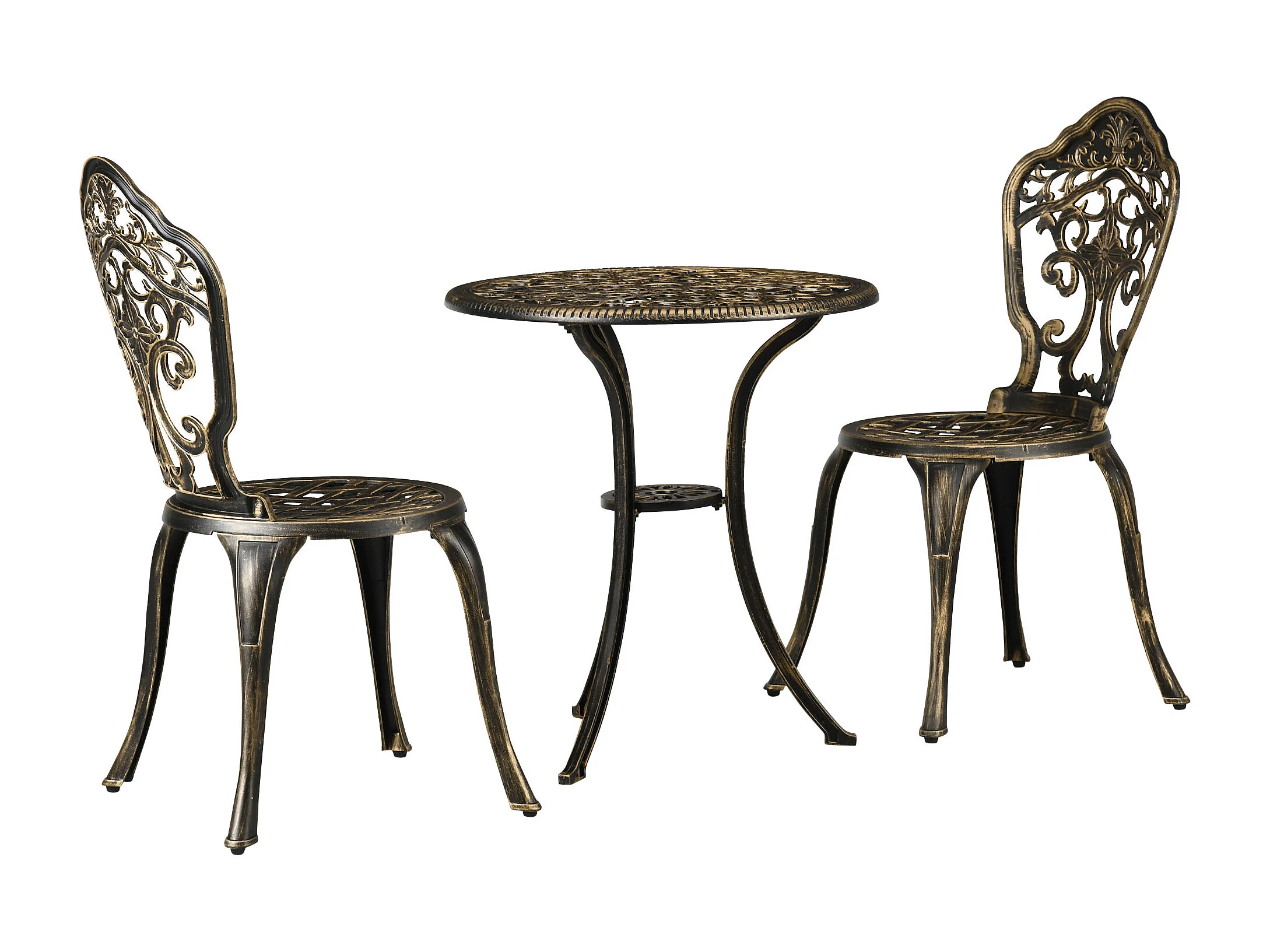 Set da esterno 3pz con 2 sedie da giardino e tavolino rotondo bronzo