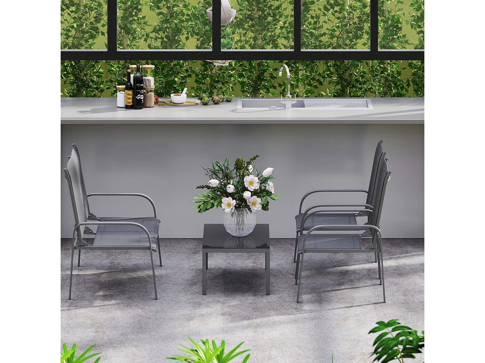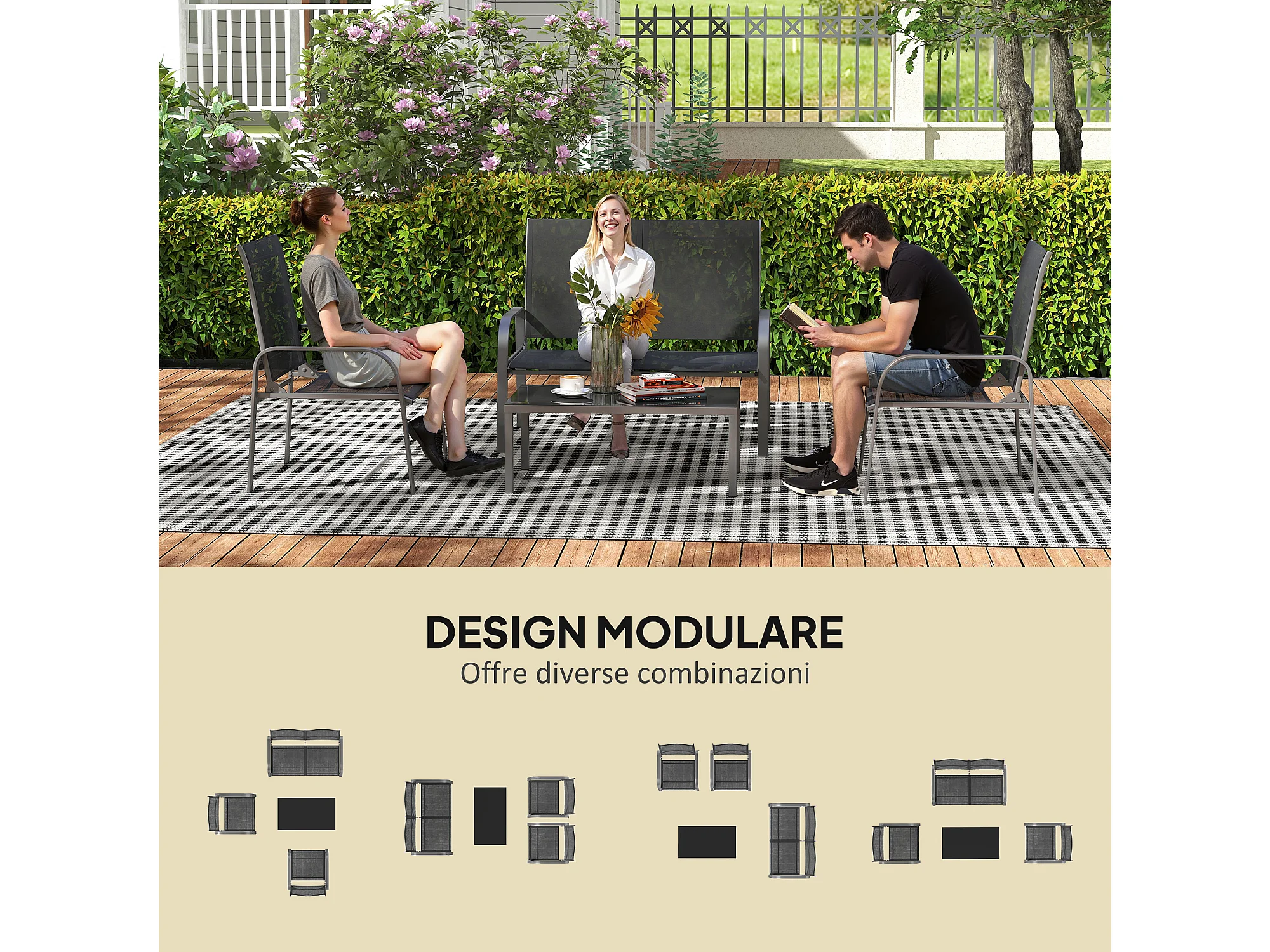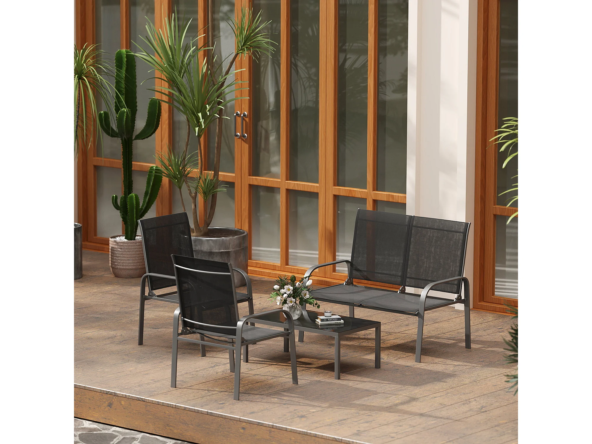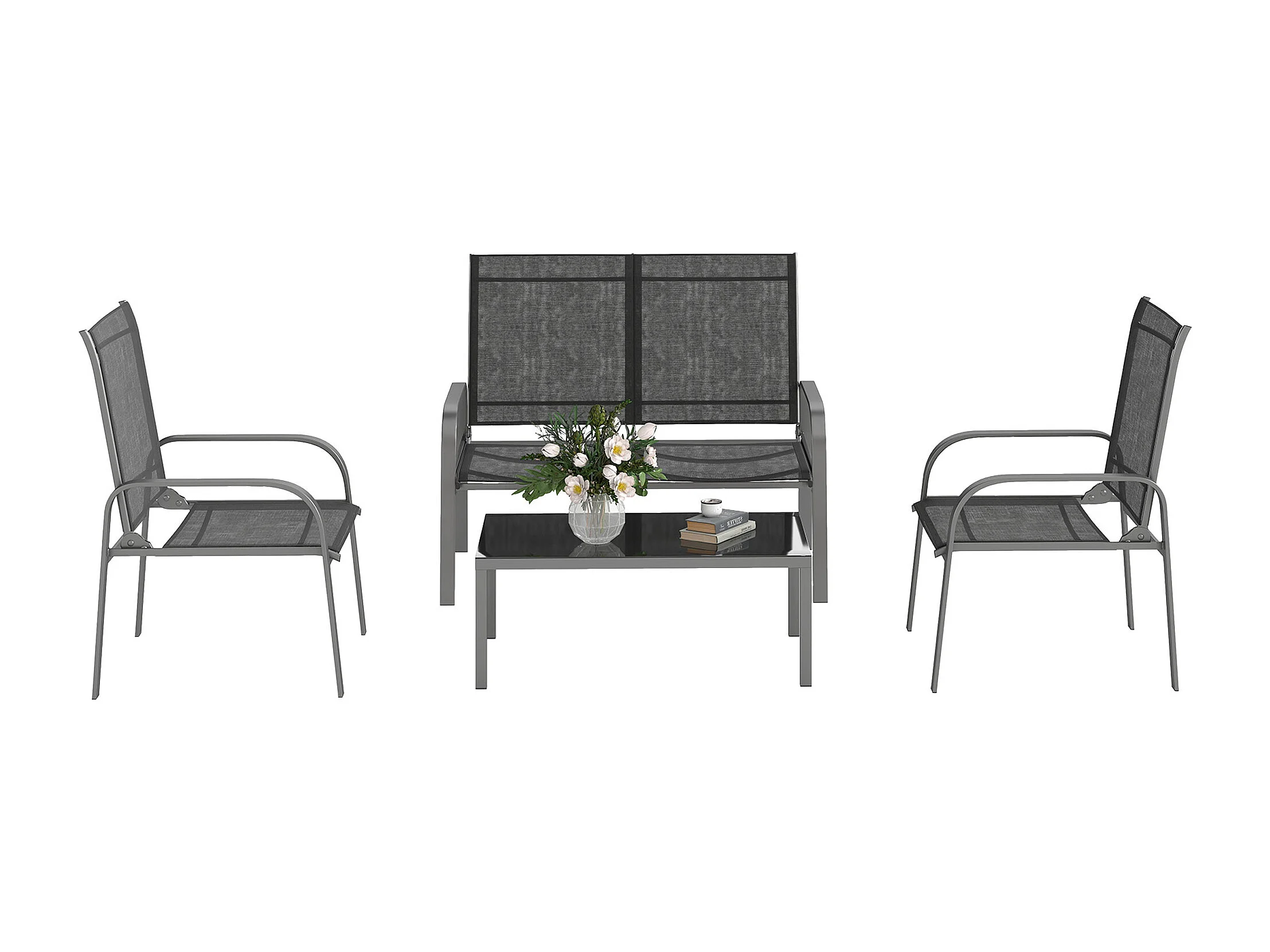 Set da esterno 4pz con tavolino da caffè, 2 sedie e divanetto nero