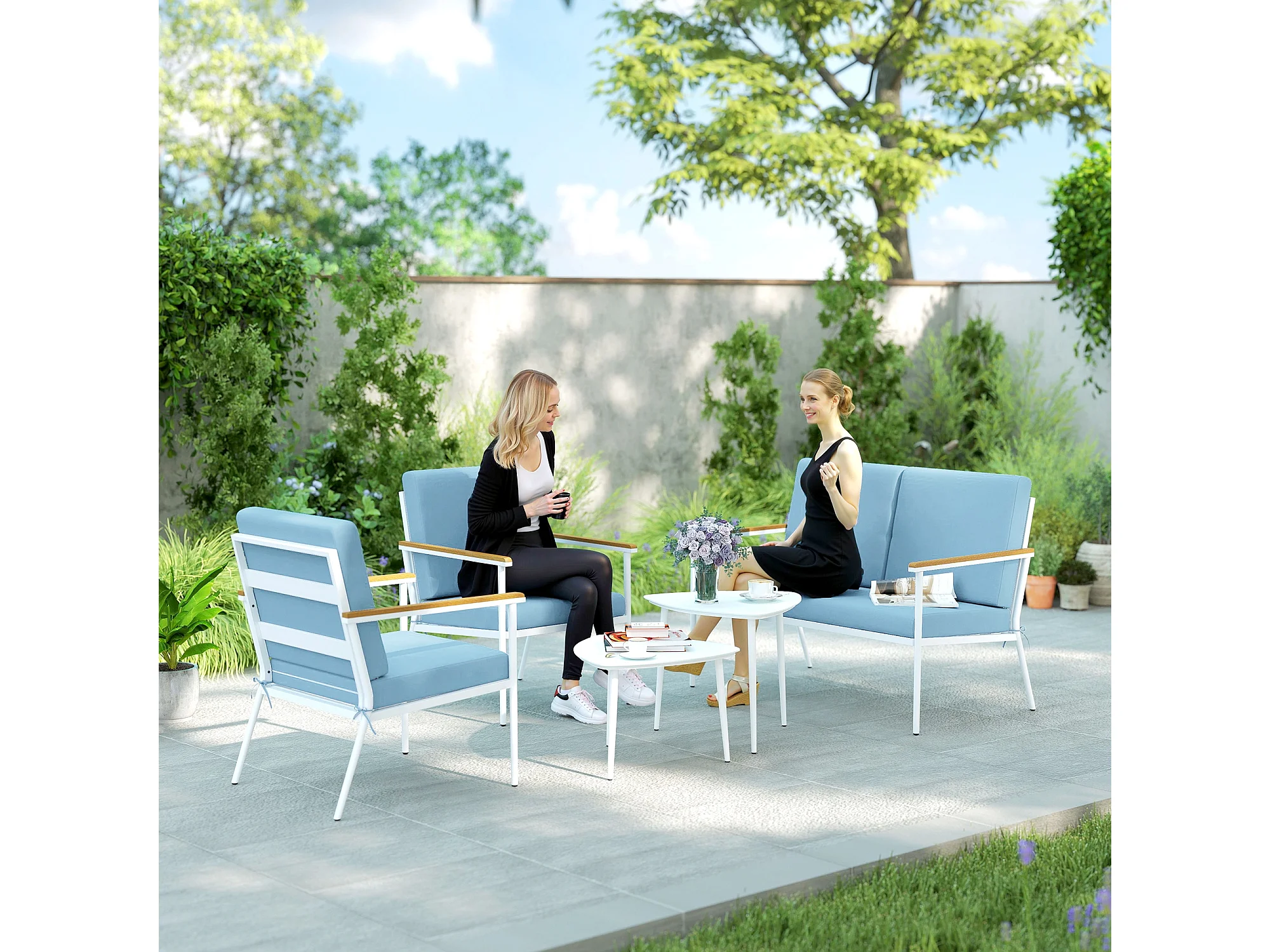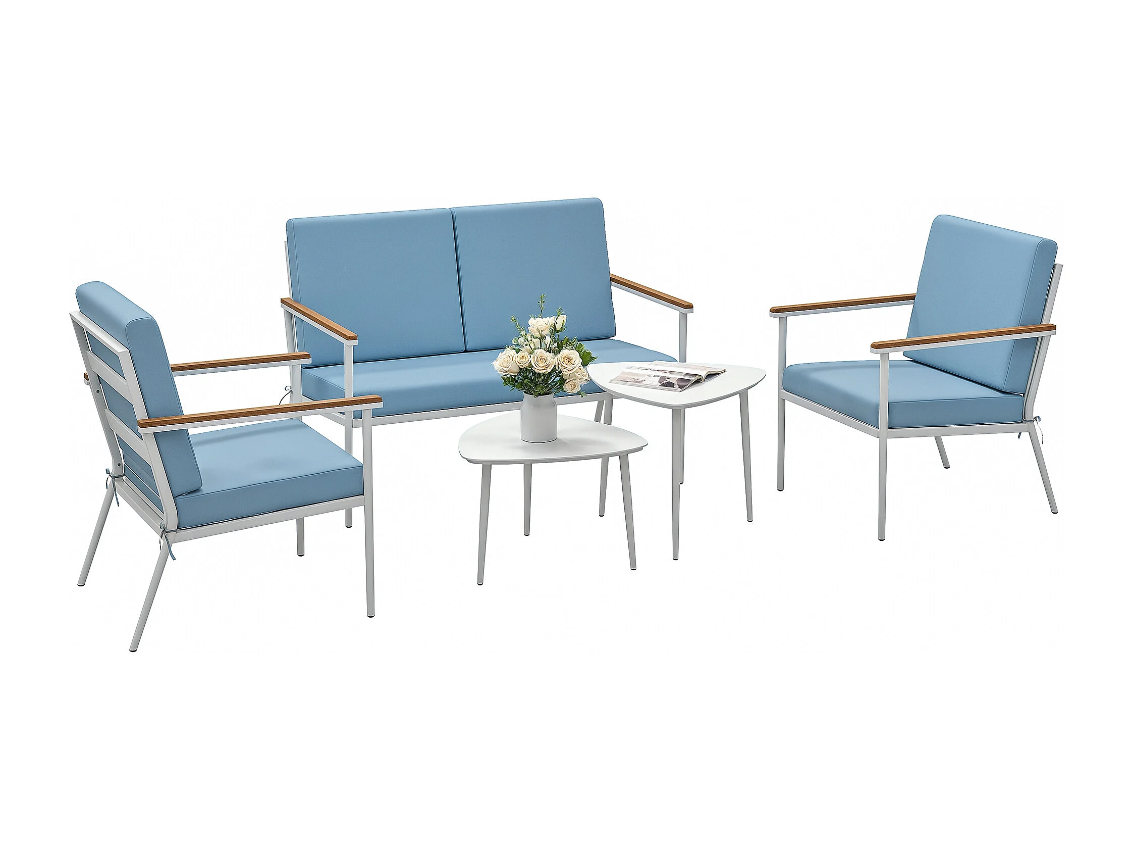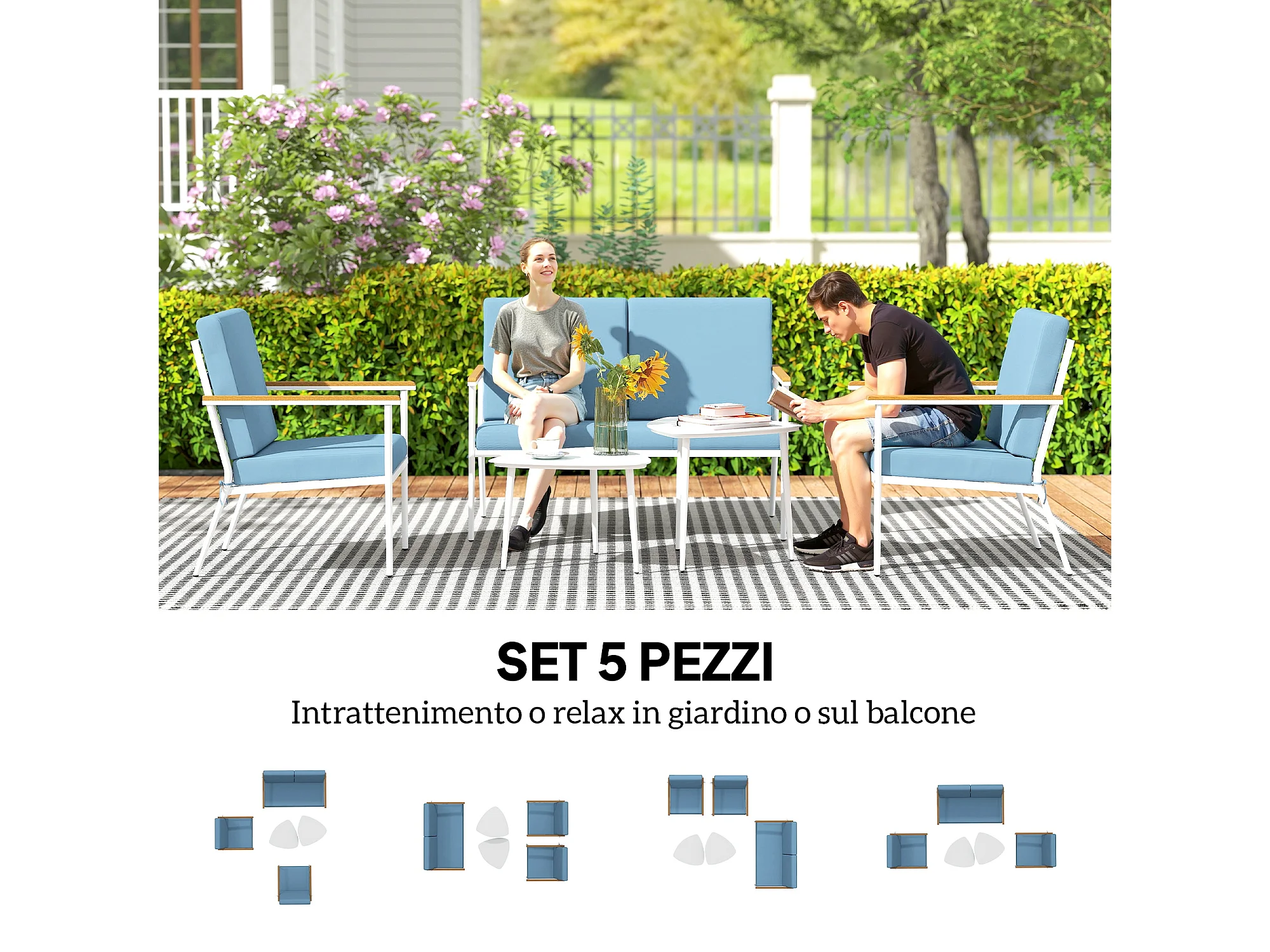 Set da esterno con divanetto 2 posti 2 poltrone e 2 tavolini azzurro