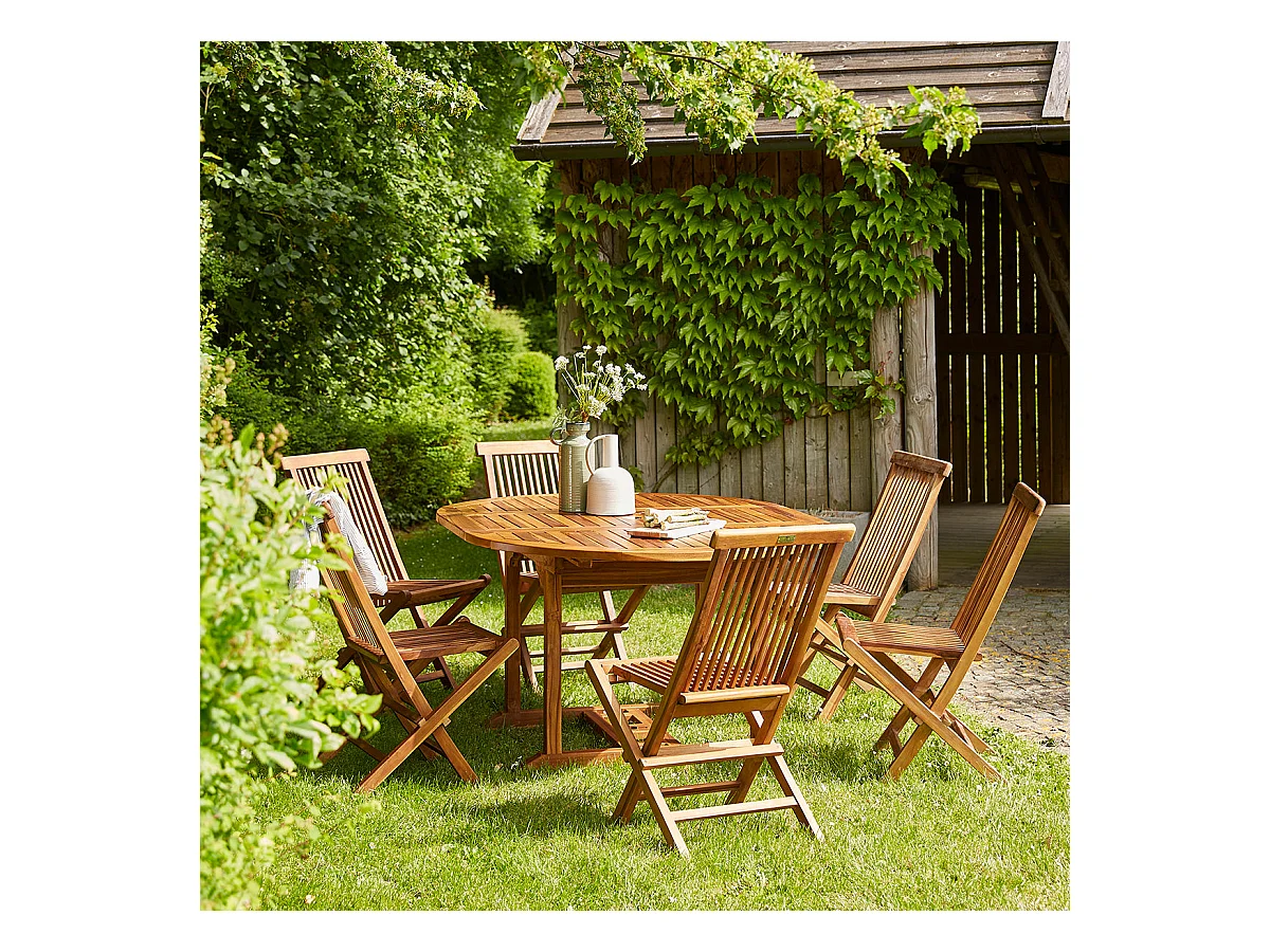 Set da esterno con tavolo allungabile in teak oliato per 6/8 persone